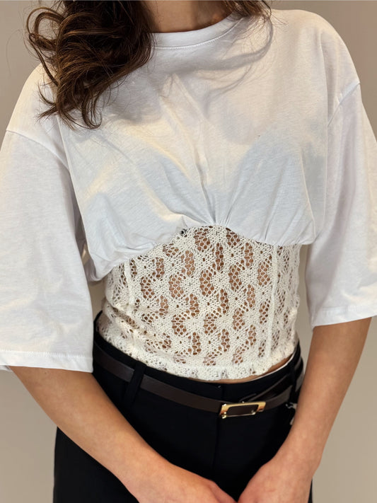 Bellissima maglia con effetto macrame’. Da indossare con un reggiseno chiaro perché leggermente trasparente.