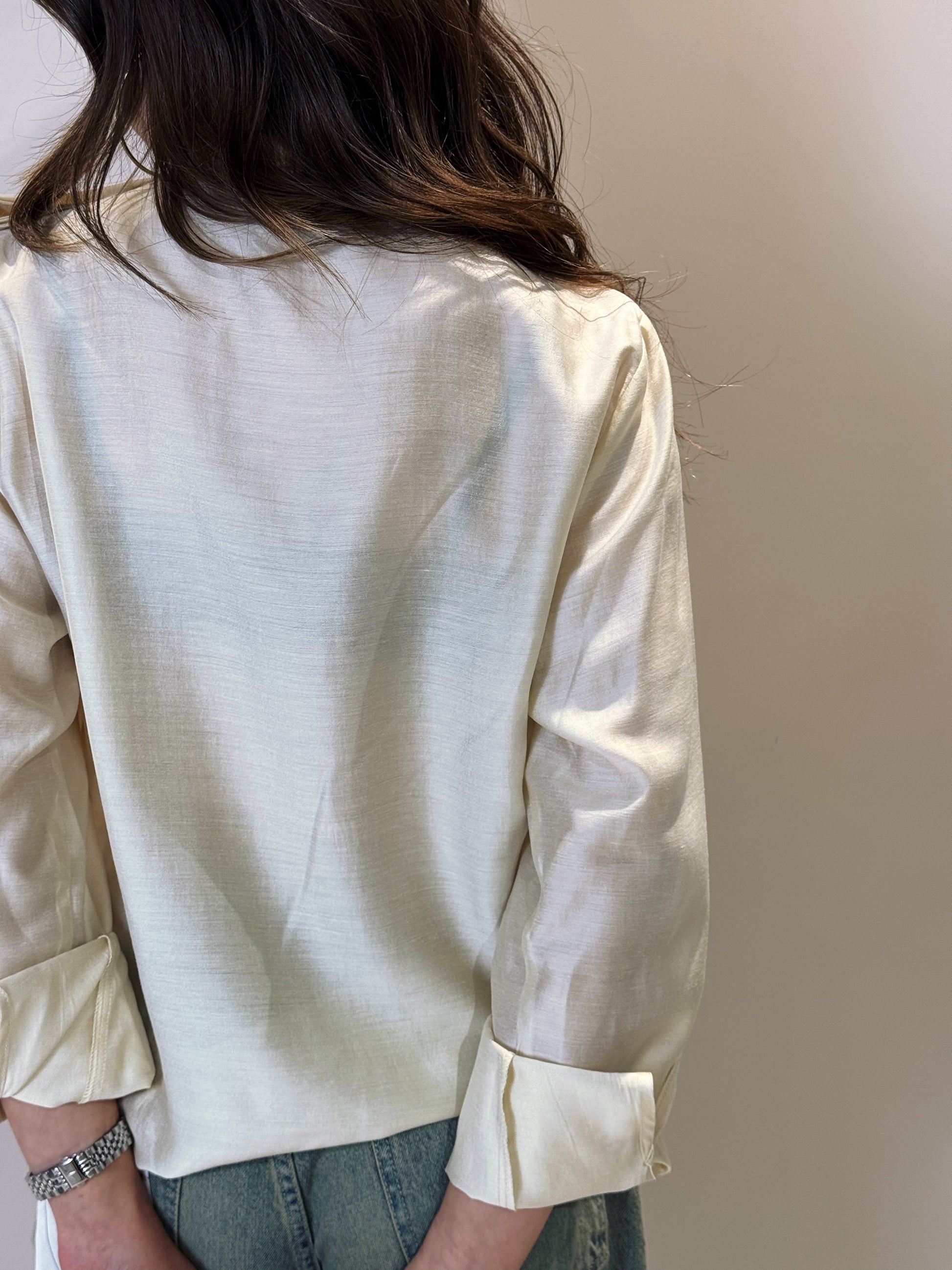 Caratterizzata da una texture delicatamente lucente che richiama la preziosità della seta, questa camicia è il pezzo chiave per creare look sofisticati che non passano inosservati.