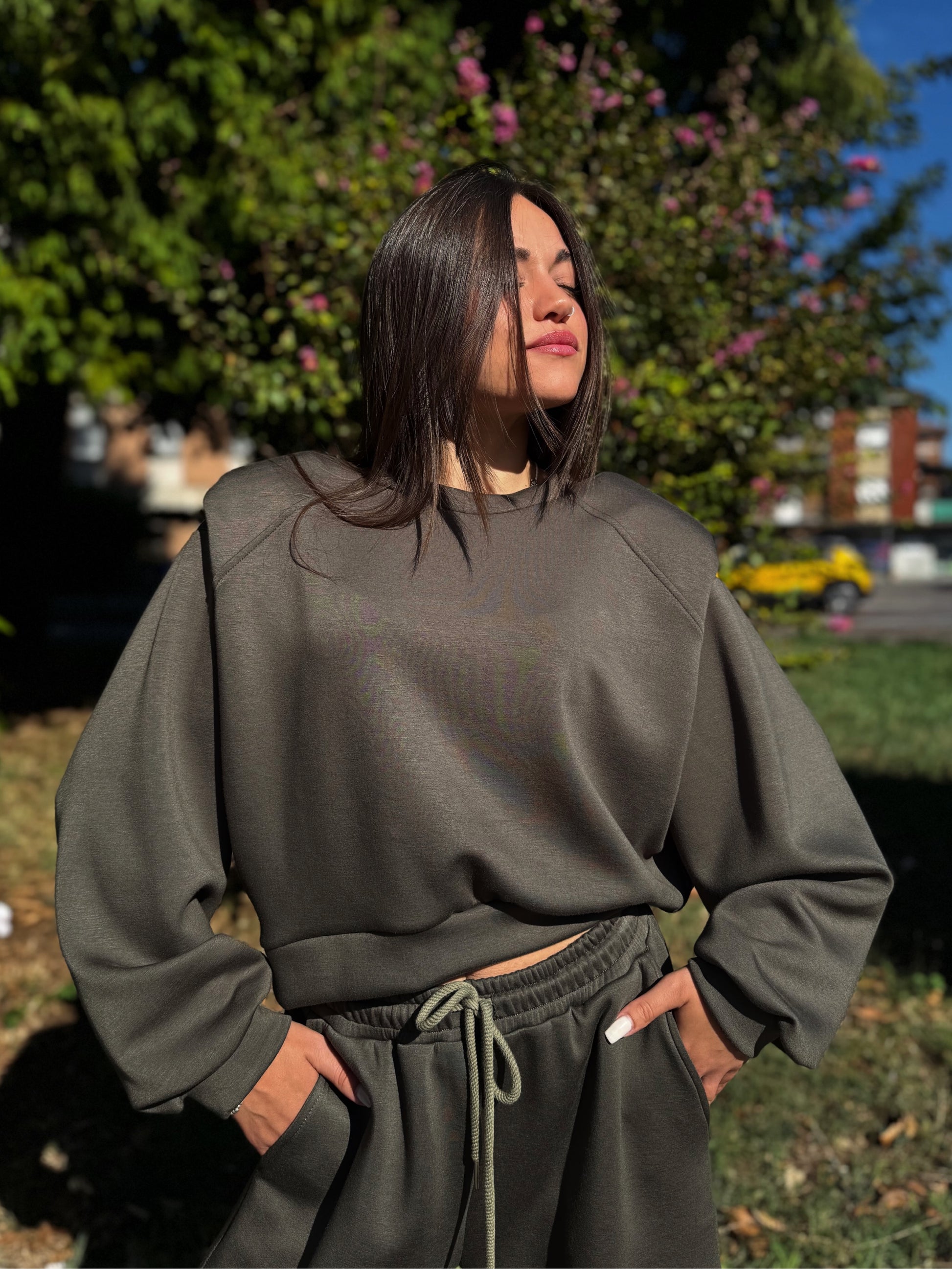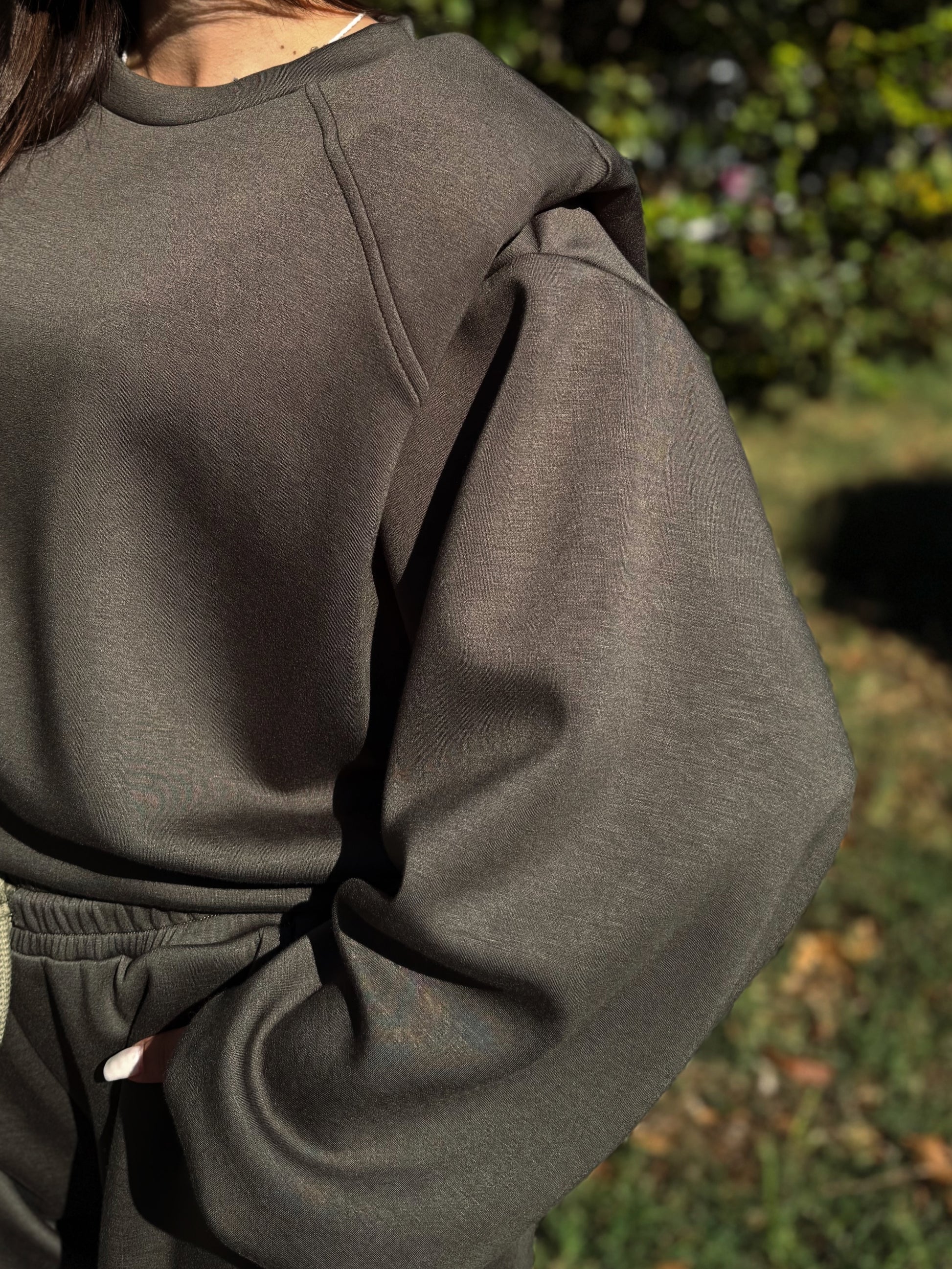 Felpa dal modello a scatoletta con spallini imbottiti, che donano alla felpa un effetto sofisticato e chic. Il tessuto è morbido e confortevole, ma soprattutto è anche elasticizzato. Abbinata al suo pantalone hai la possibilità di creare un look sportivo e chic!