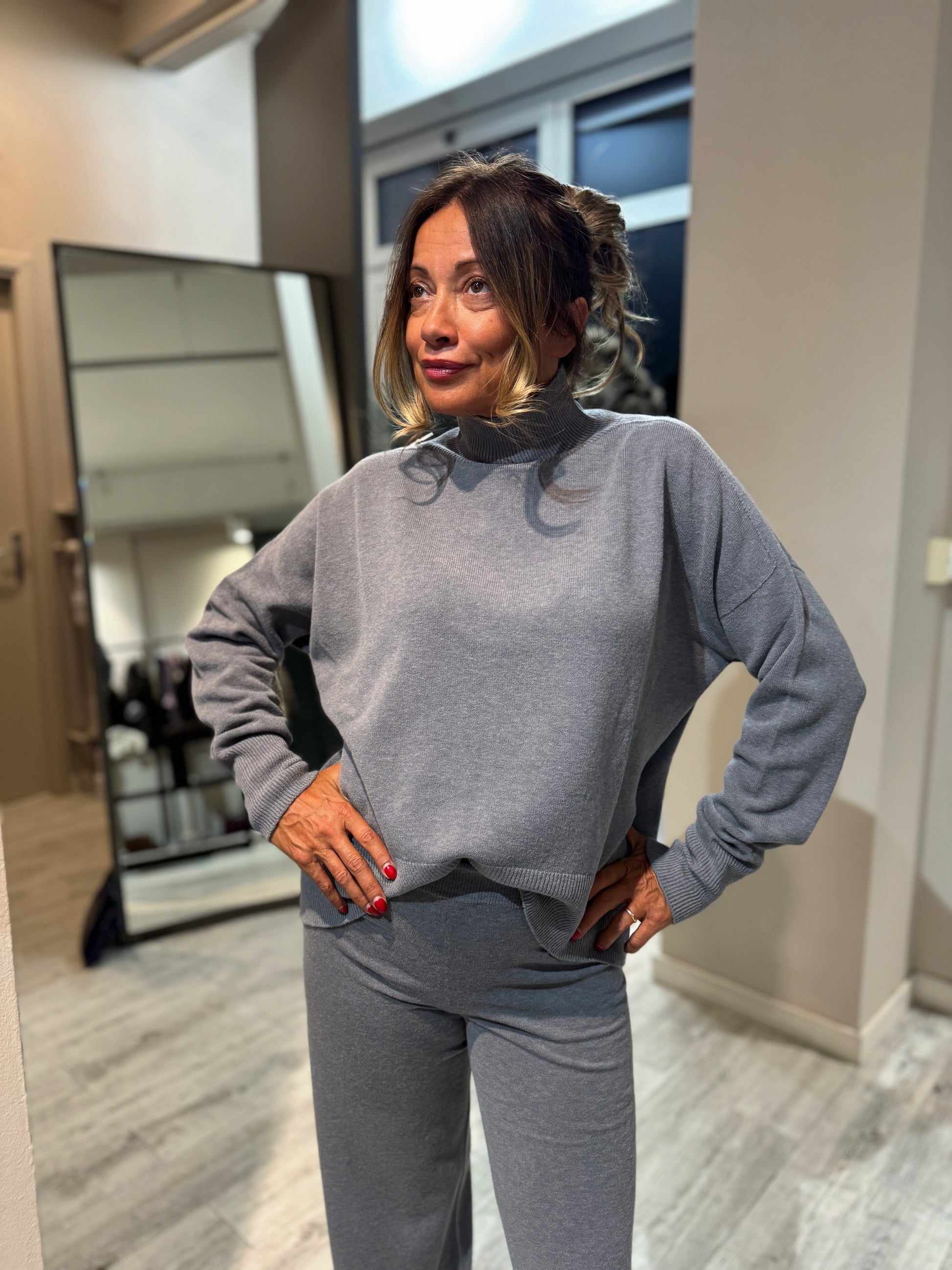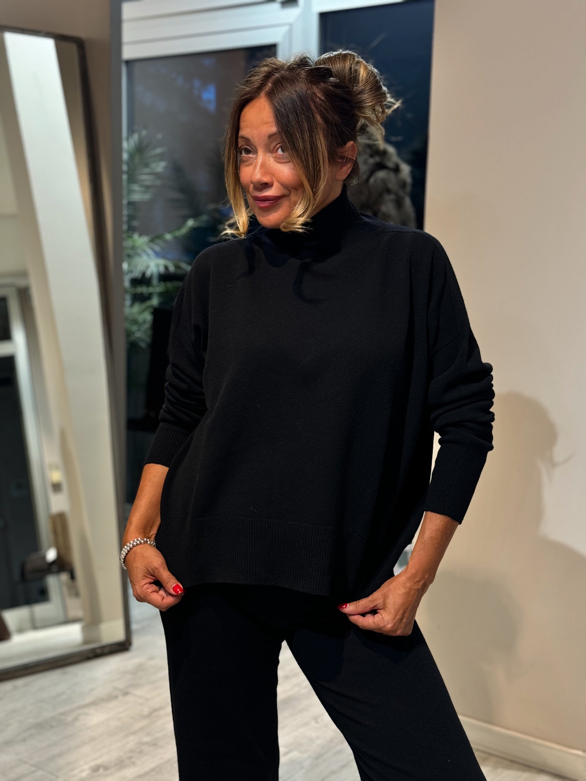 Lupetto con collo a cratere, con polsini e colletto a costine. È un modello morbido che si appoggia sulle forme in modo molto delicato. È taglia unica, super elasticizzato con un’ottima vestibilità!