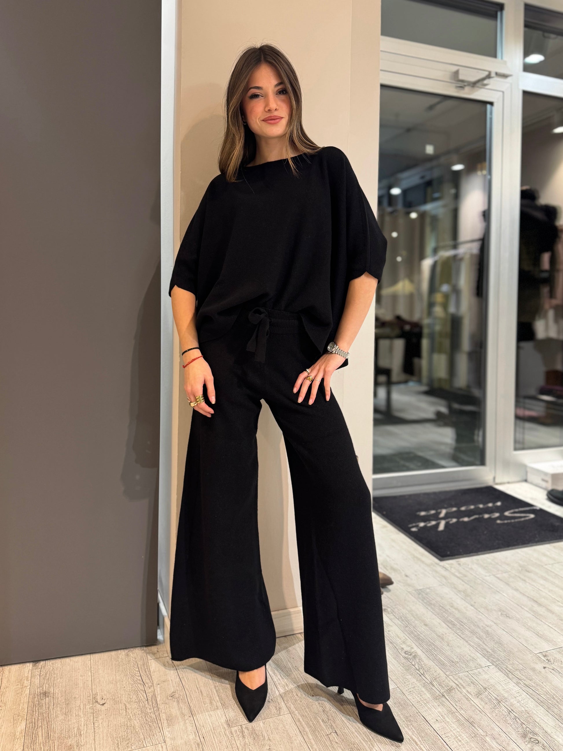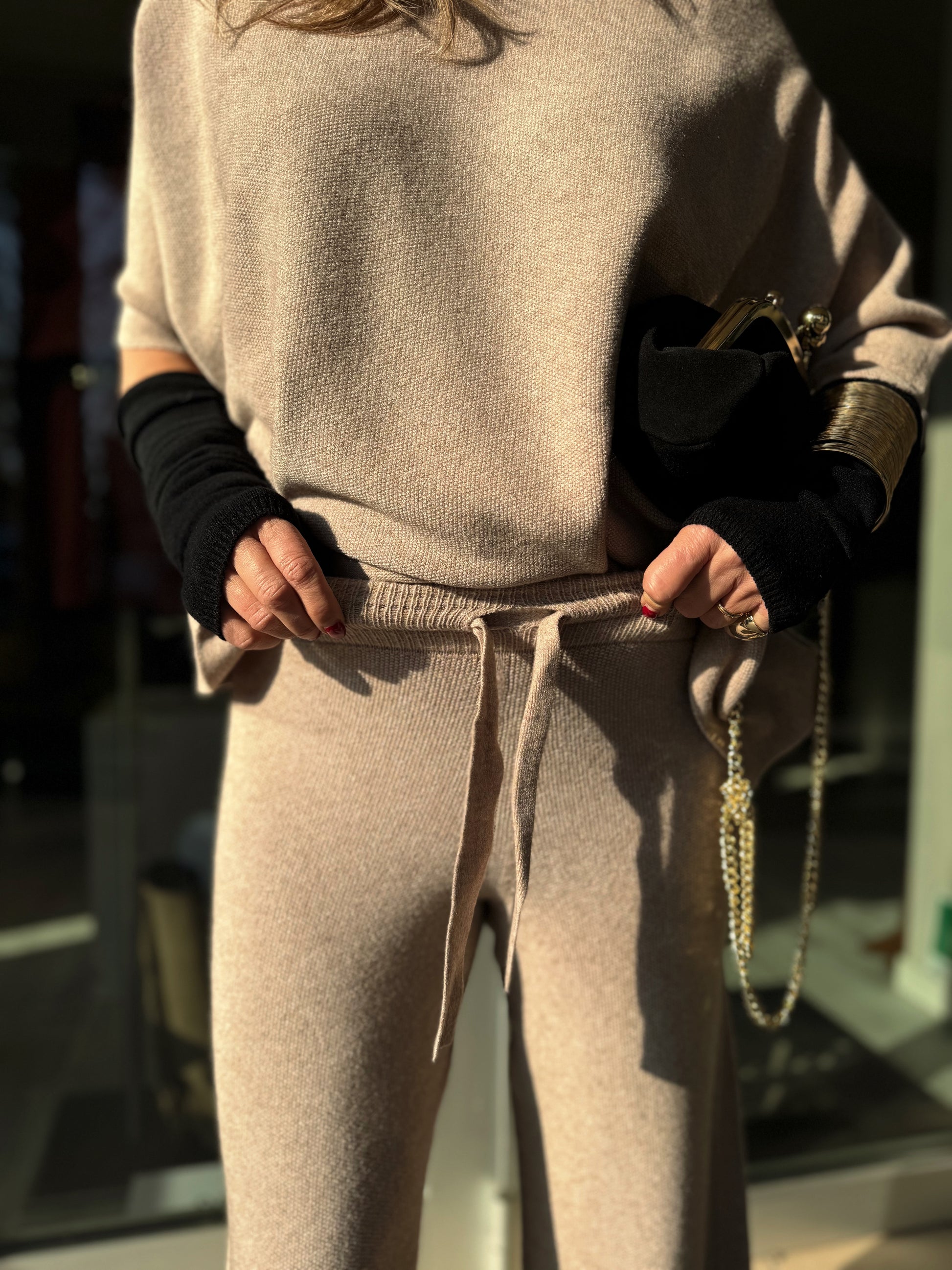 Pantalone in maglia con elastico in vita e coulisse, che garantiscono un'ottima vestibilità! Super morbido e soffice. Taglia unica.
