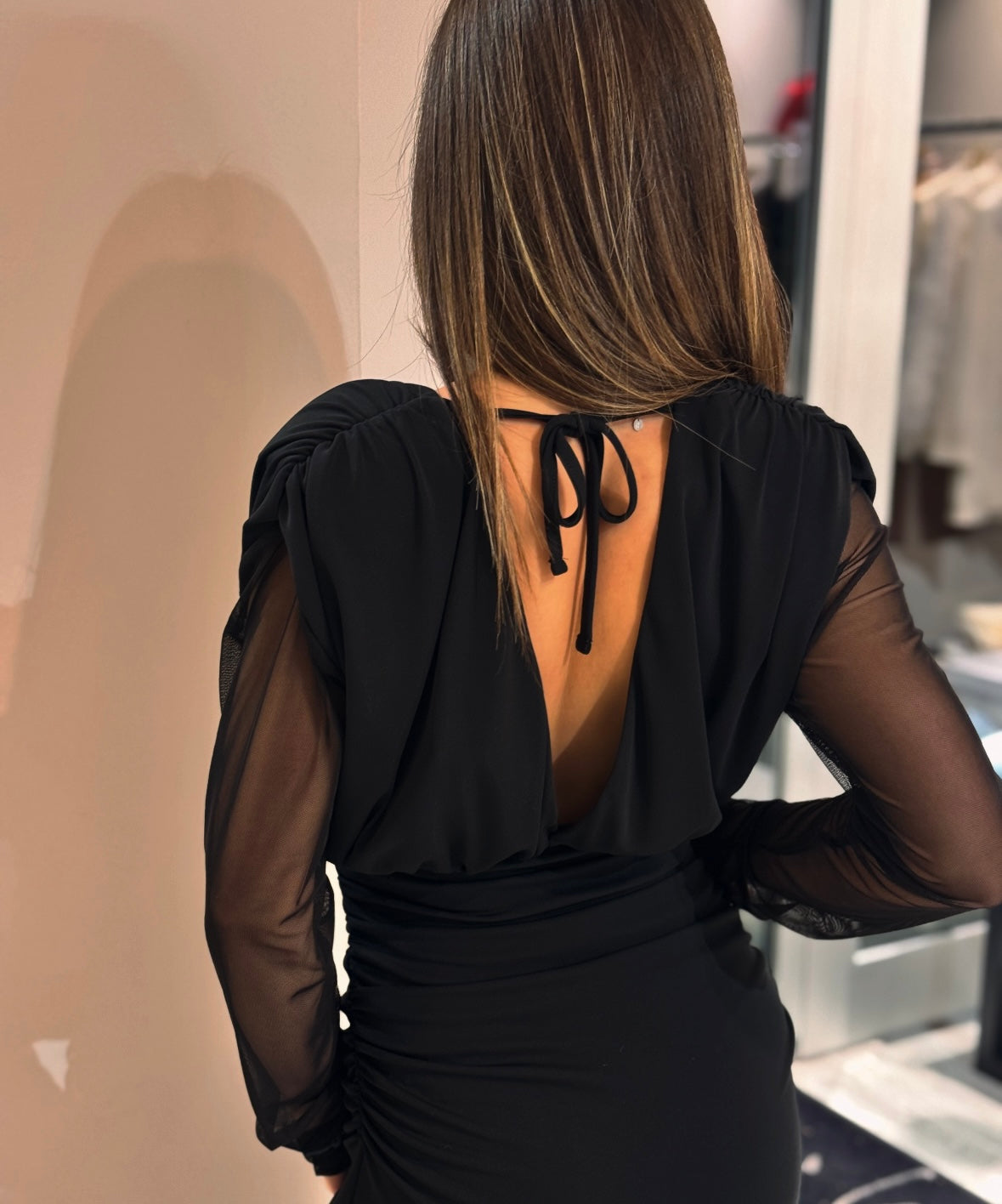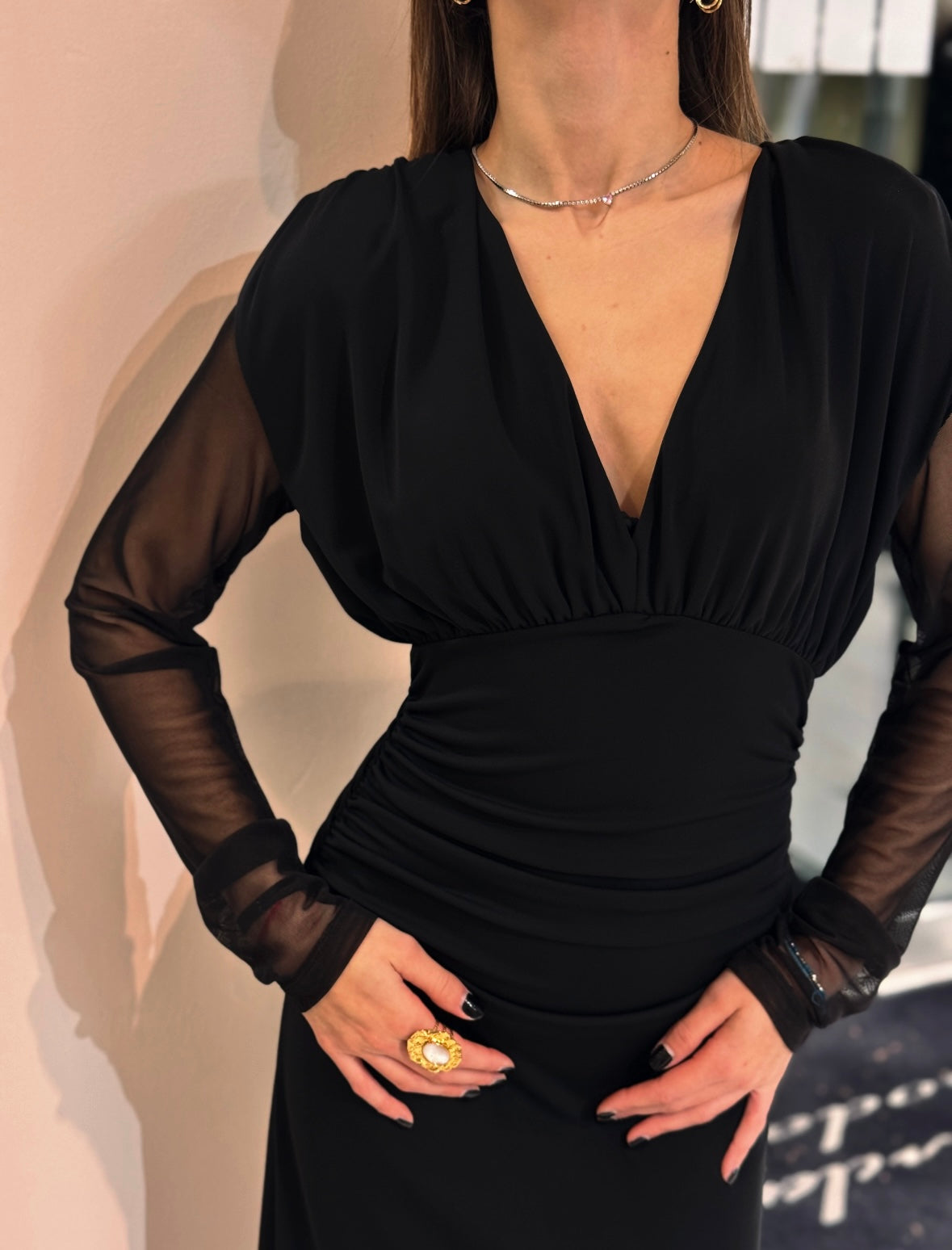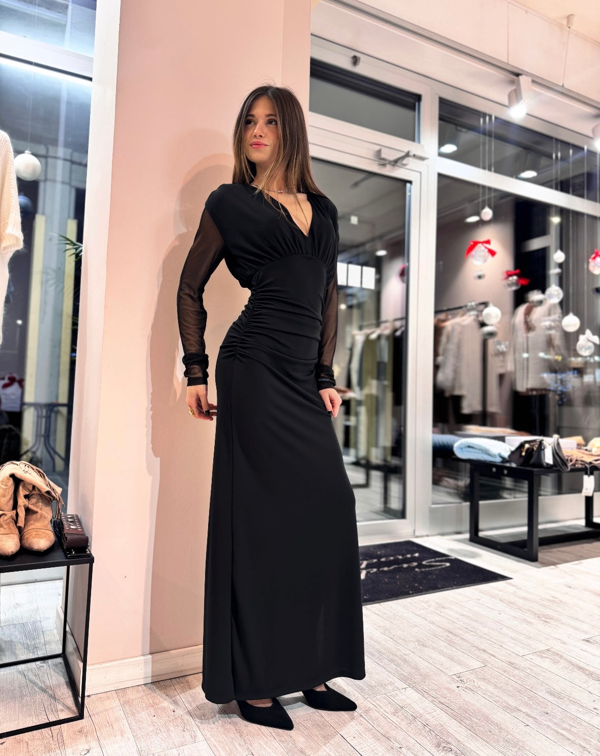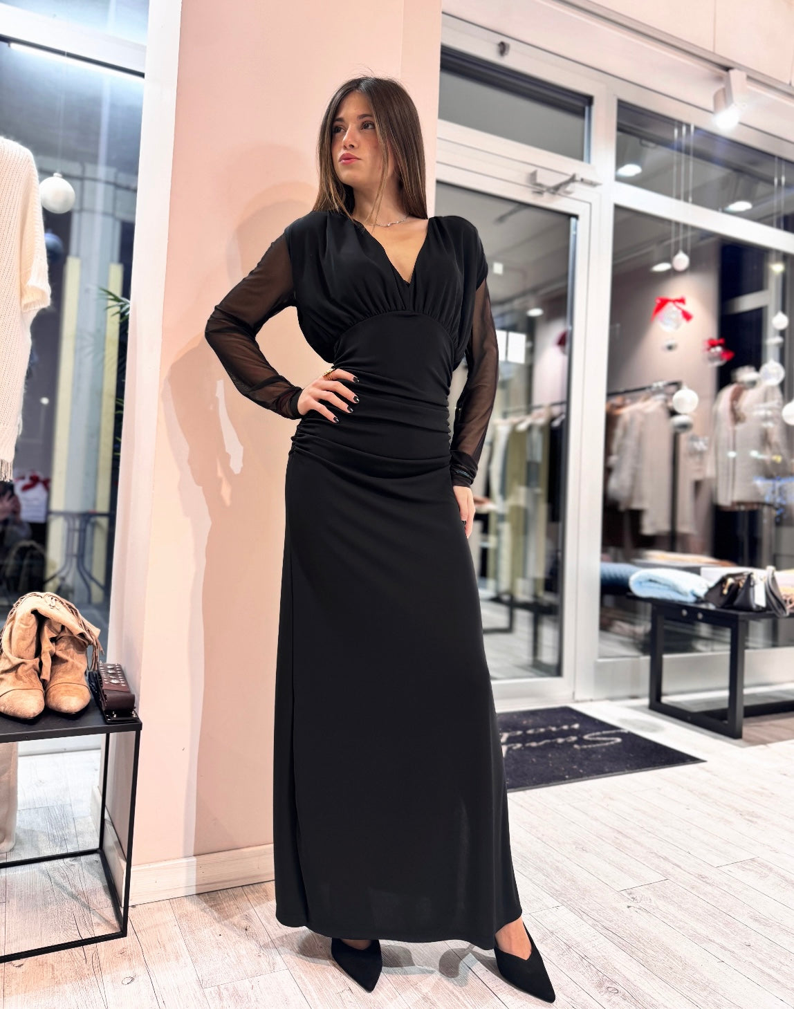 Abito lungo, con spalline imbottite, scollo a v e per finire taglio sotto il seno, che lo rende adatto sia a chi ha poco seno perché rimane aderente senza risultare largo, ma anche a chi ha un seno più abbondante perché non rimane troppo scollato ed è super elasticizzato! Inoltre ha un leggero spacco sul fondo sinistro.