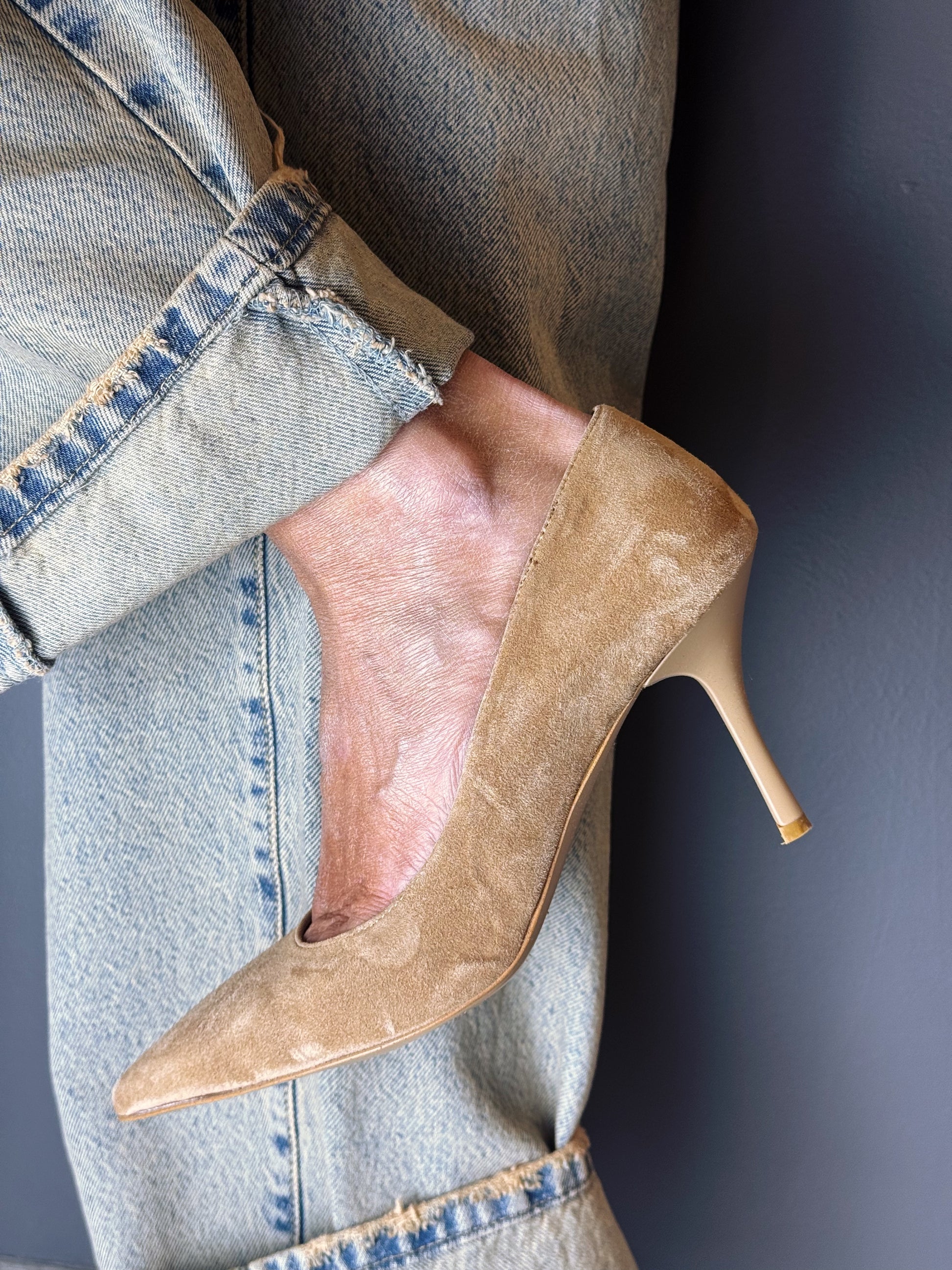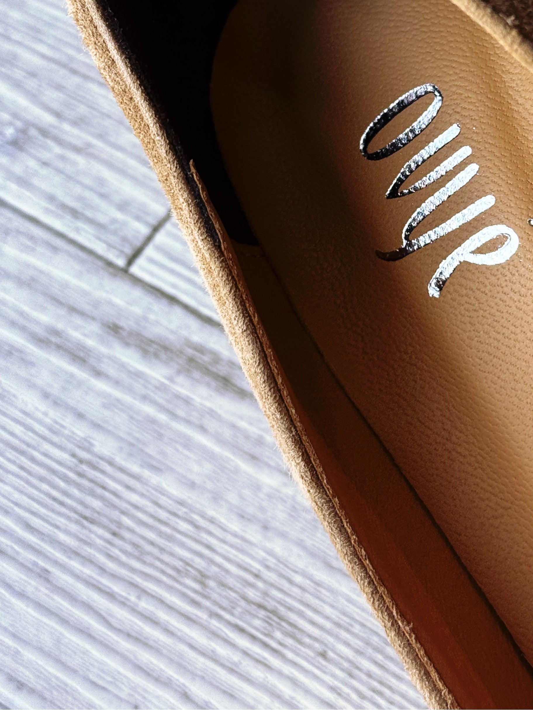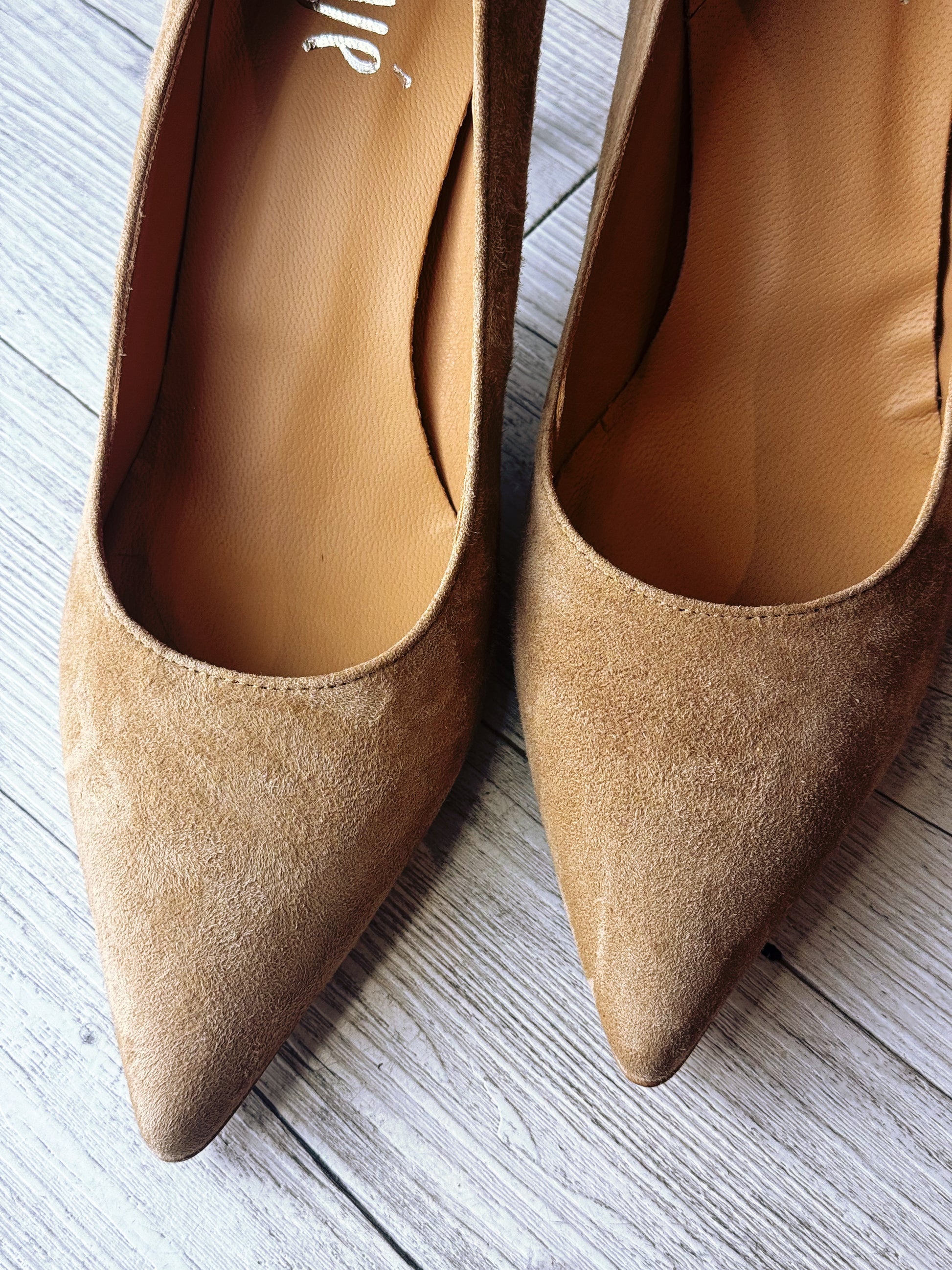 Materiale: Pregiata pelle scamosciata (suede) dalla texture morbida e vellutata al tatto.