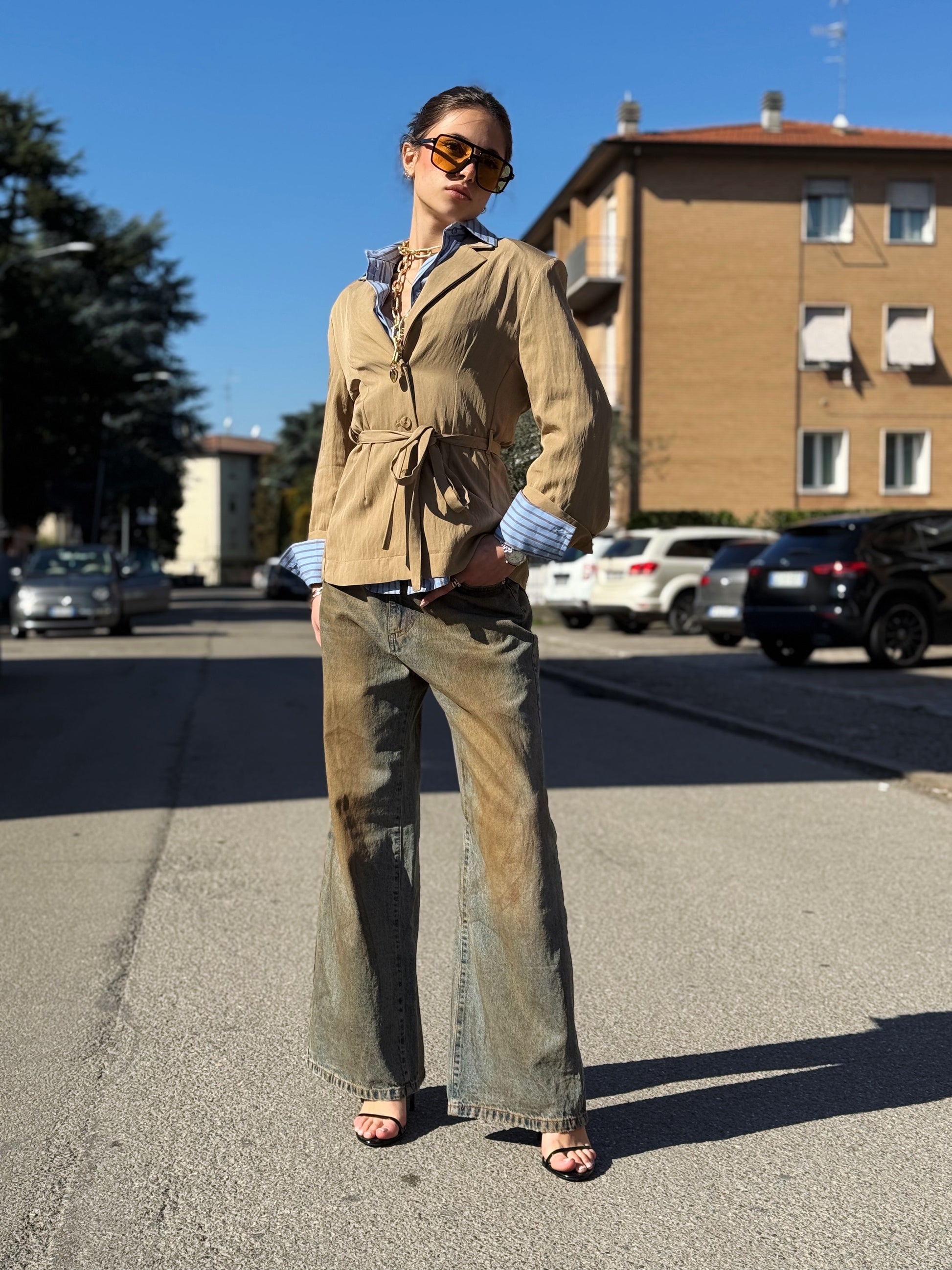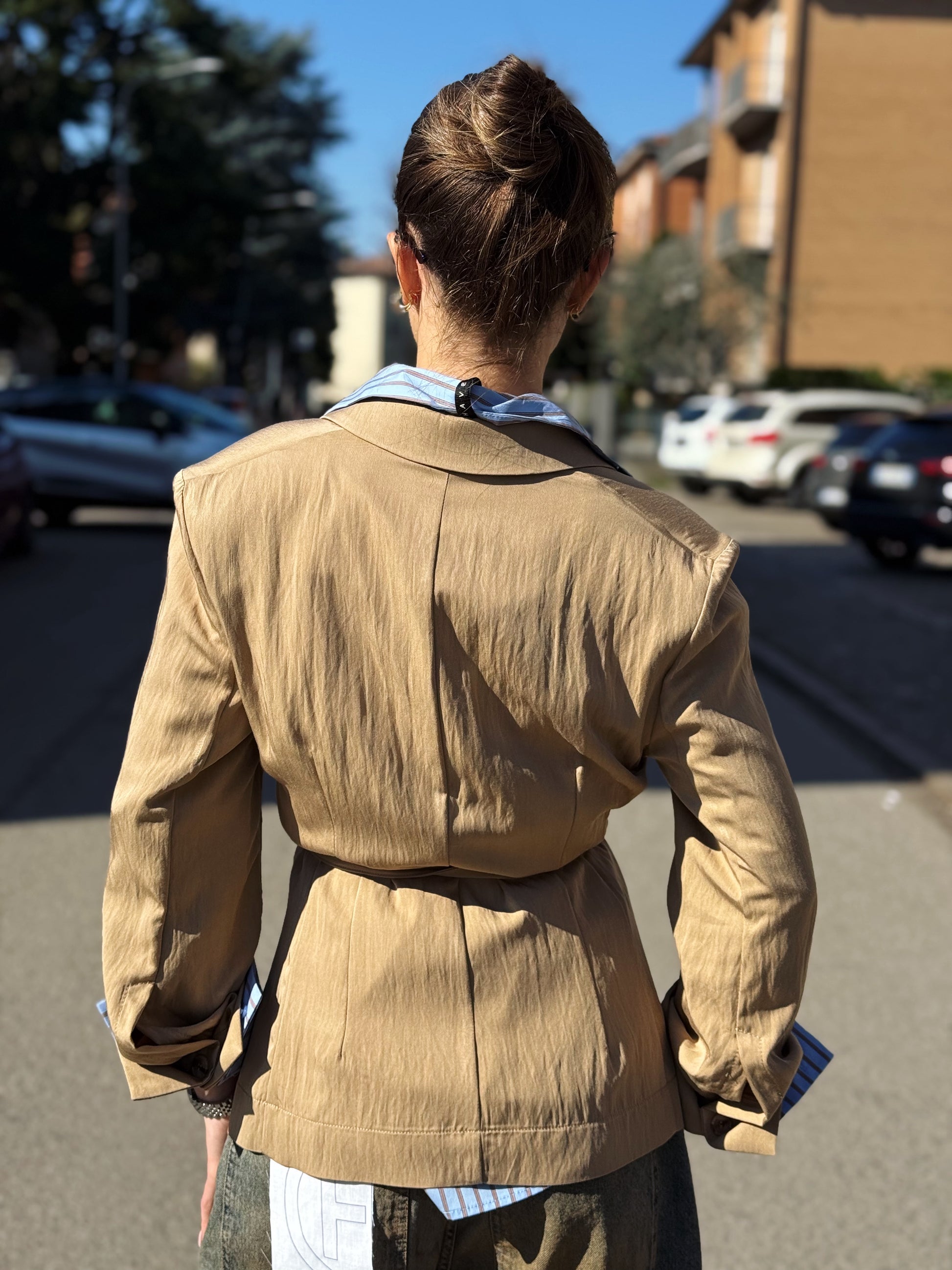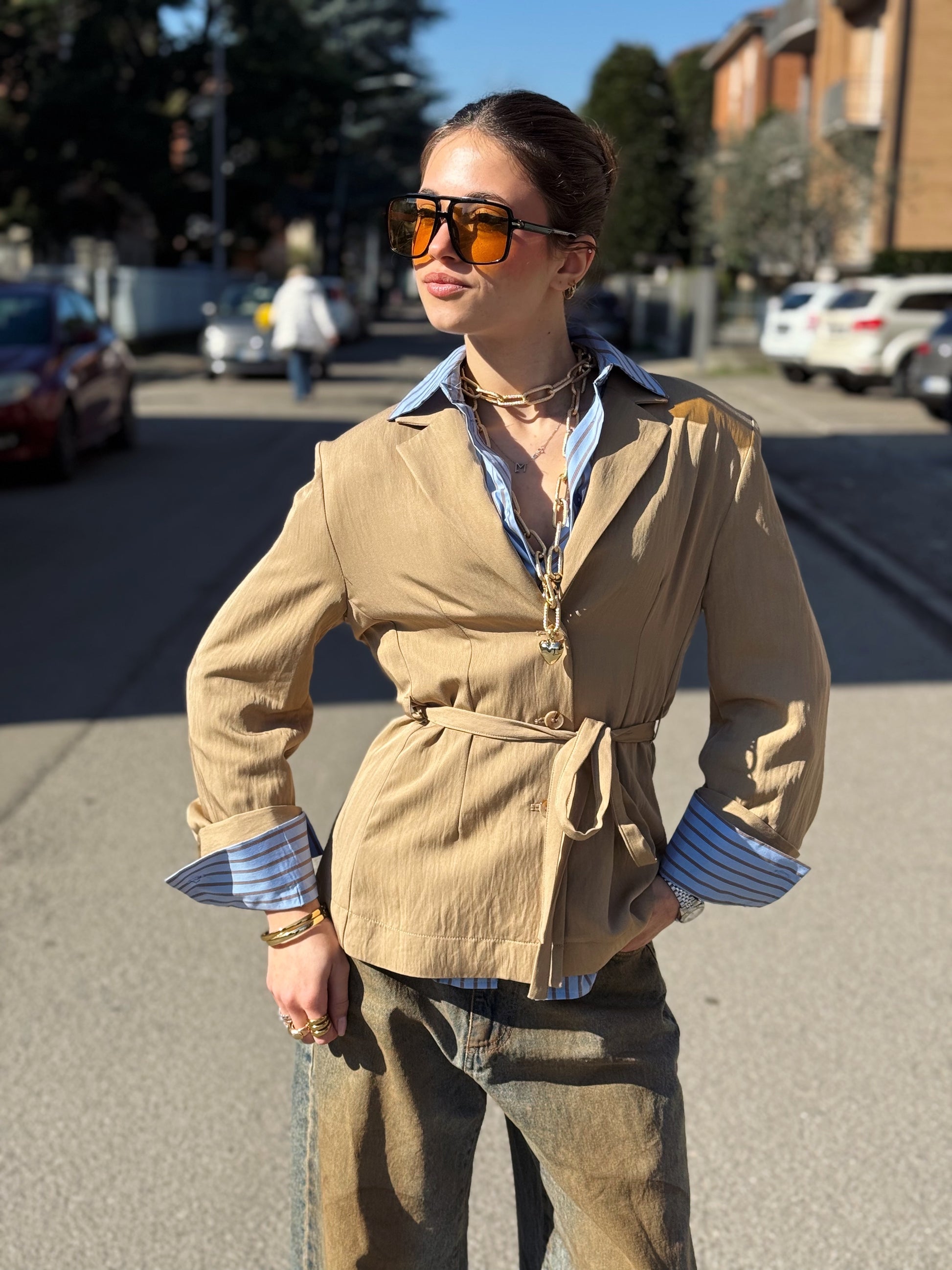 Silhouette: Grazie alla cintura sottile coordinata in vita, puoi scegliere di indossarla avvitata per sottolineare la figura o aperta per un look più rilassato.
