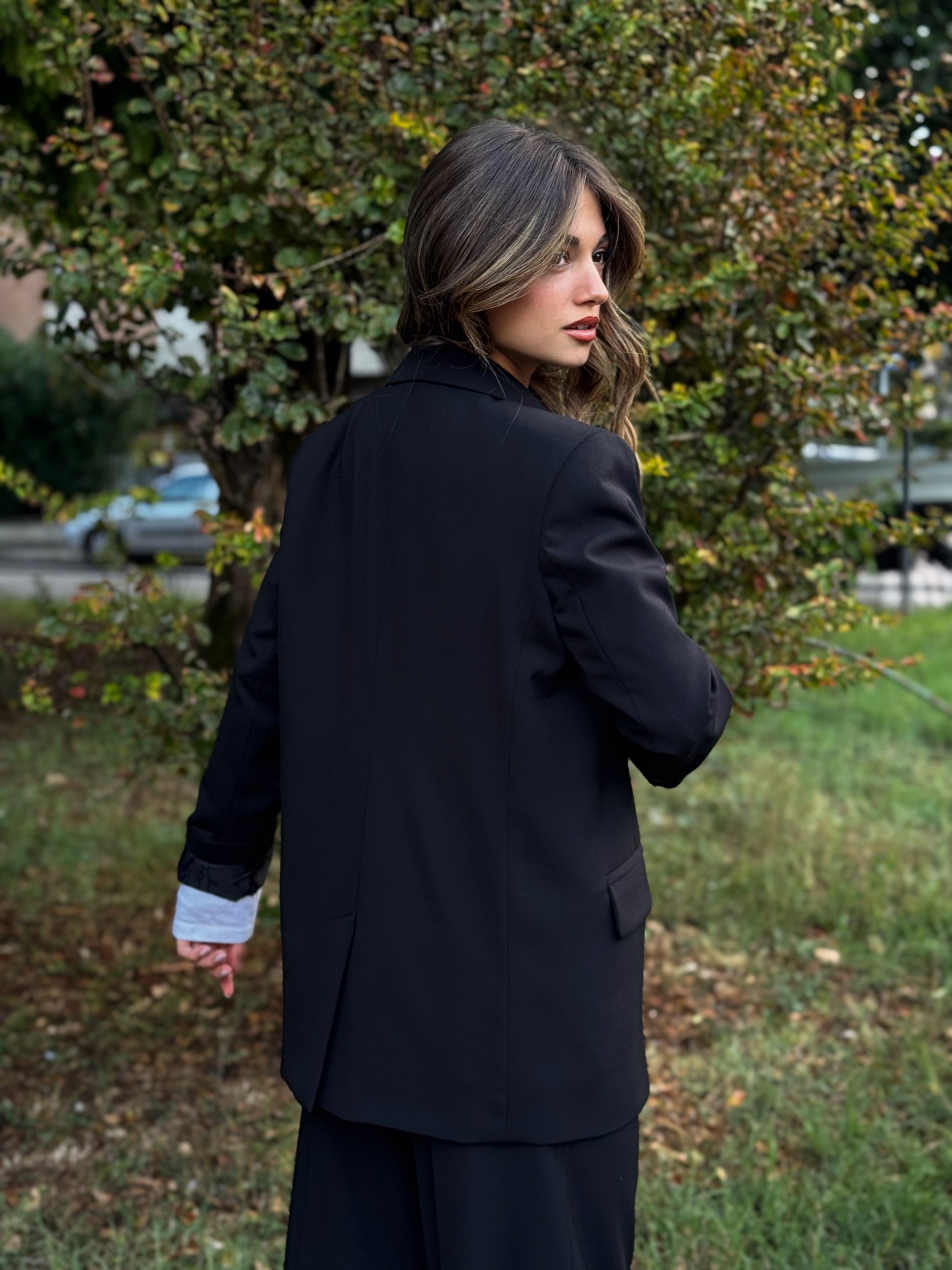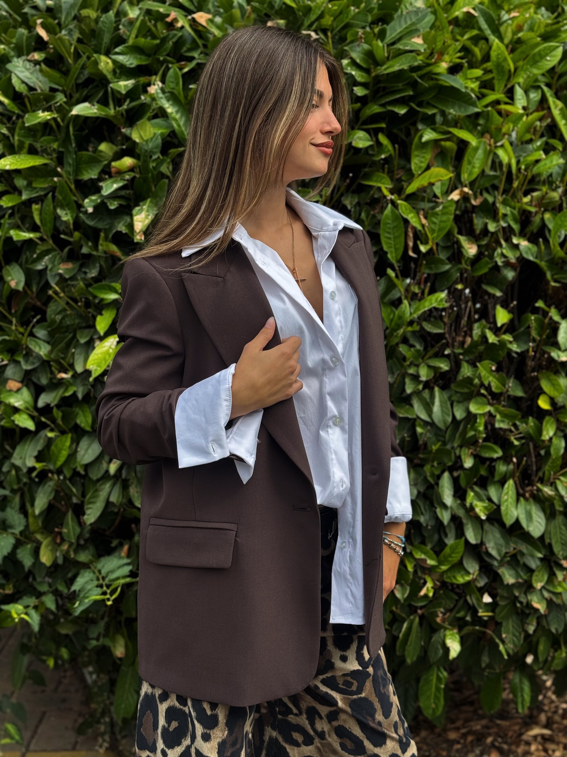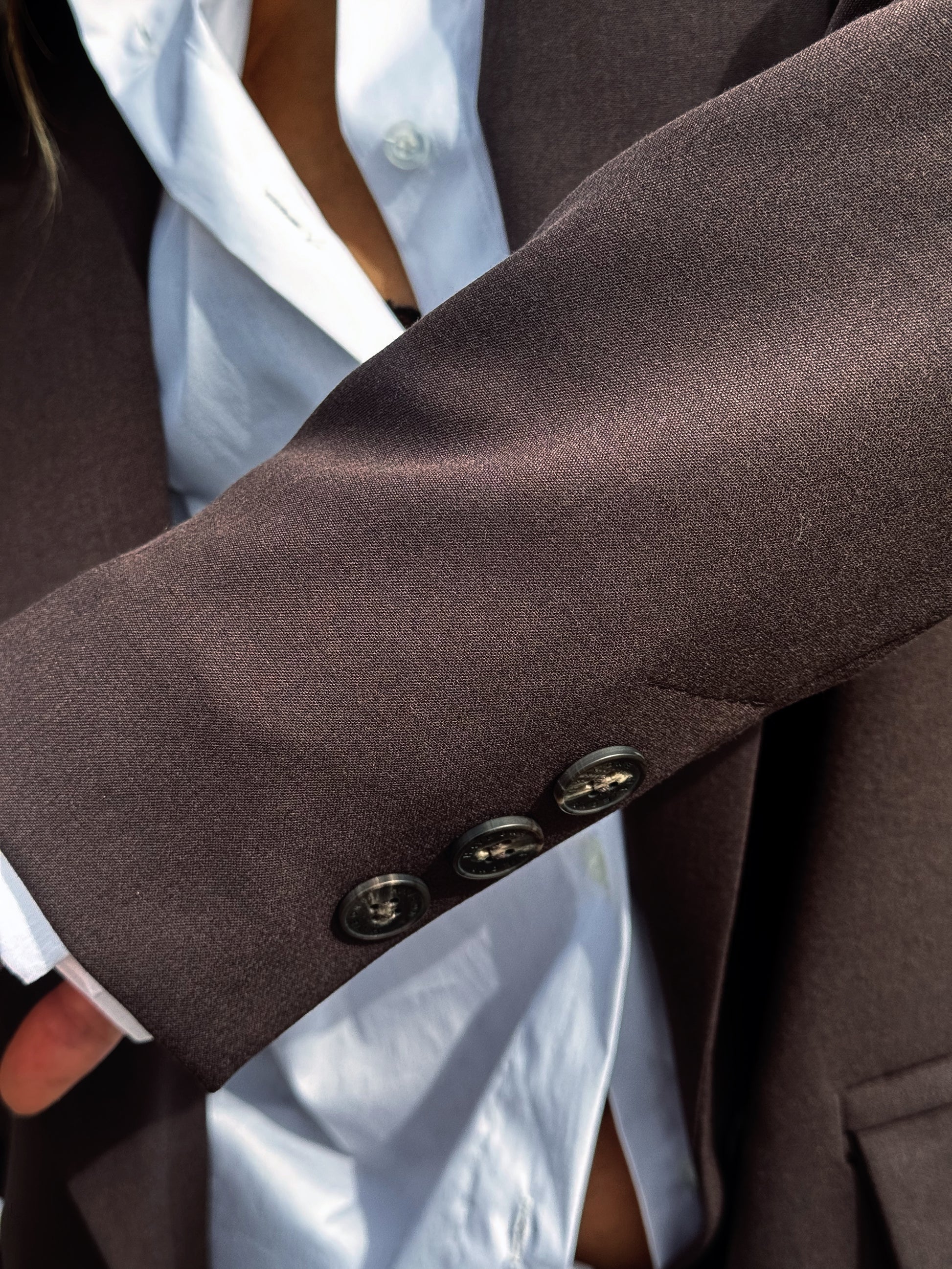 Questo blazer strutturato è il capo essenziale per un look sofisticato e curato in ogni occasione. Il suo taglio classico e la linea pulita lo rendono perfetto per il lavoro, mentre la sua versatilità ti permette di indossarlo anche per un'uscita serale. Realizzato con un tessuto di alta qualità, offre una vestibilità impeccabile e un comfort duraturo. Il dettaglio dei bottoni sul polsino aggiunge un tocco di stile che non passa inosservato.