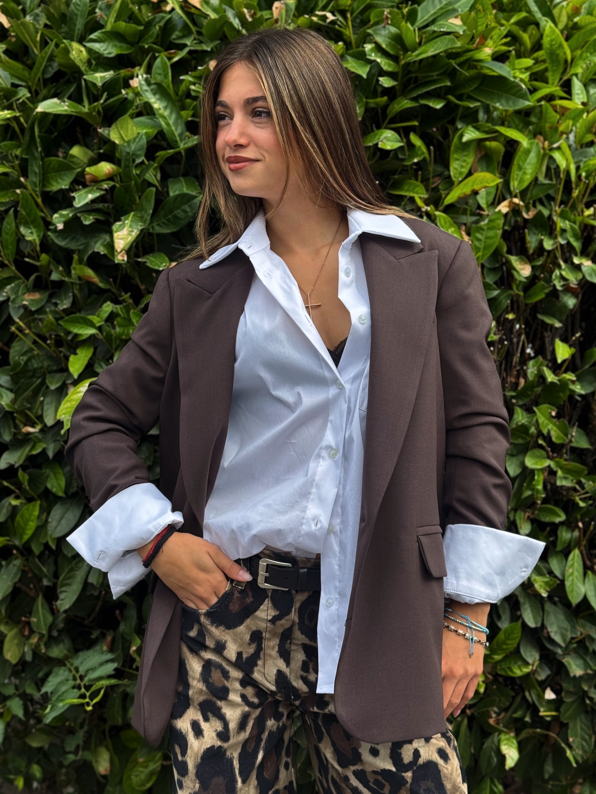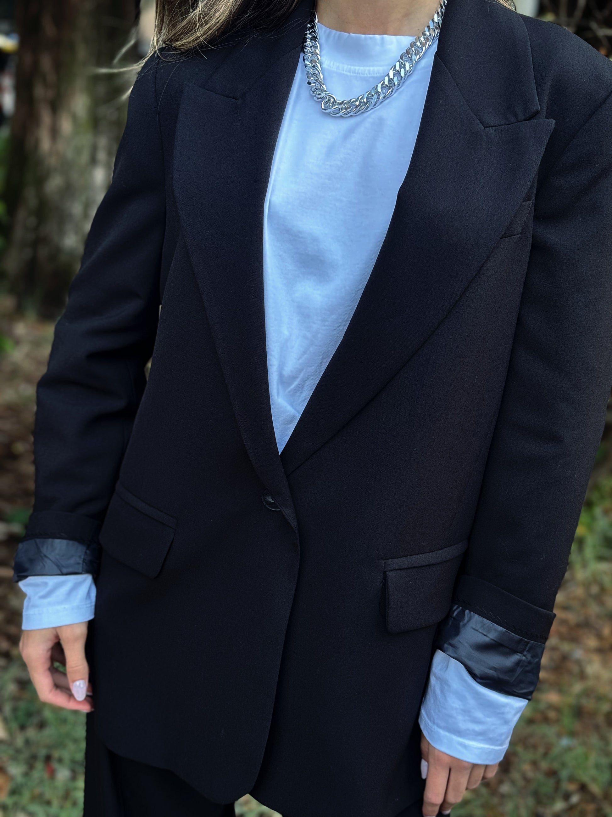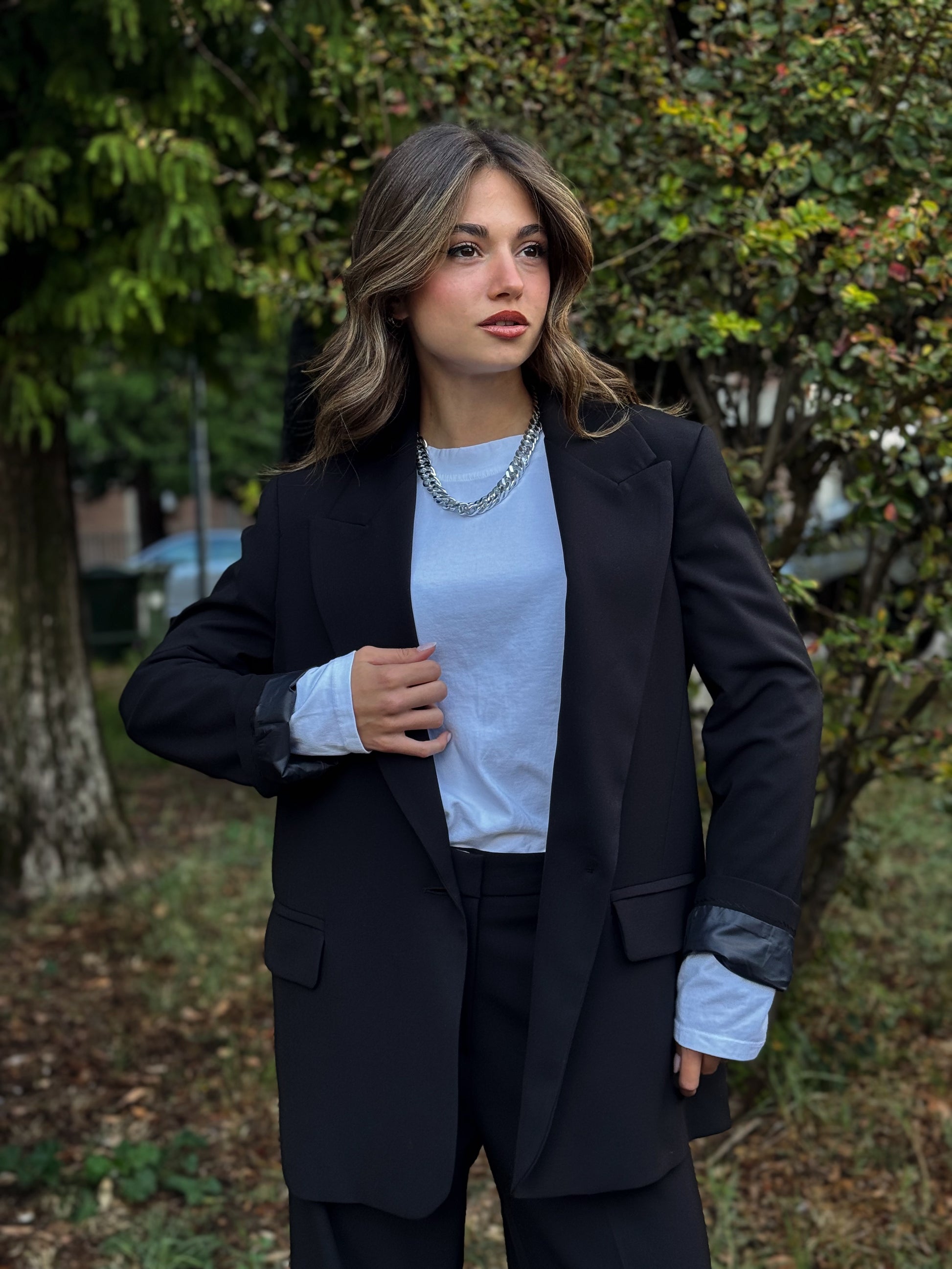 Questo blazer strutturato è il capo essenziale per un look sofisticato e curato in ogni occasione. Il suo taglio classico e la linea pulita lo rendono perfetto per il lavoro, mentre la sua versatilità ti permette di indossarlo anche per un'uscita serale. Realizzato con un tessuto di alta qualità, offre una vestibilità impeccabile e un comfort duraturo. Il dettaglio dei bottoni sul polsino aggiunge un tocco di stile che non passa inosservato.
