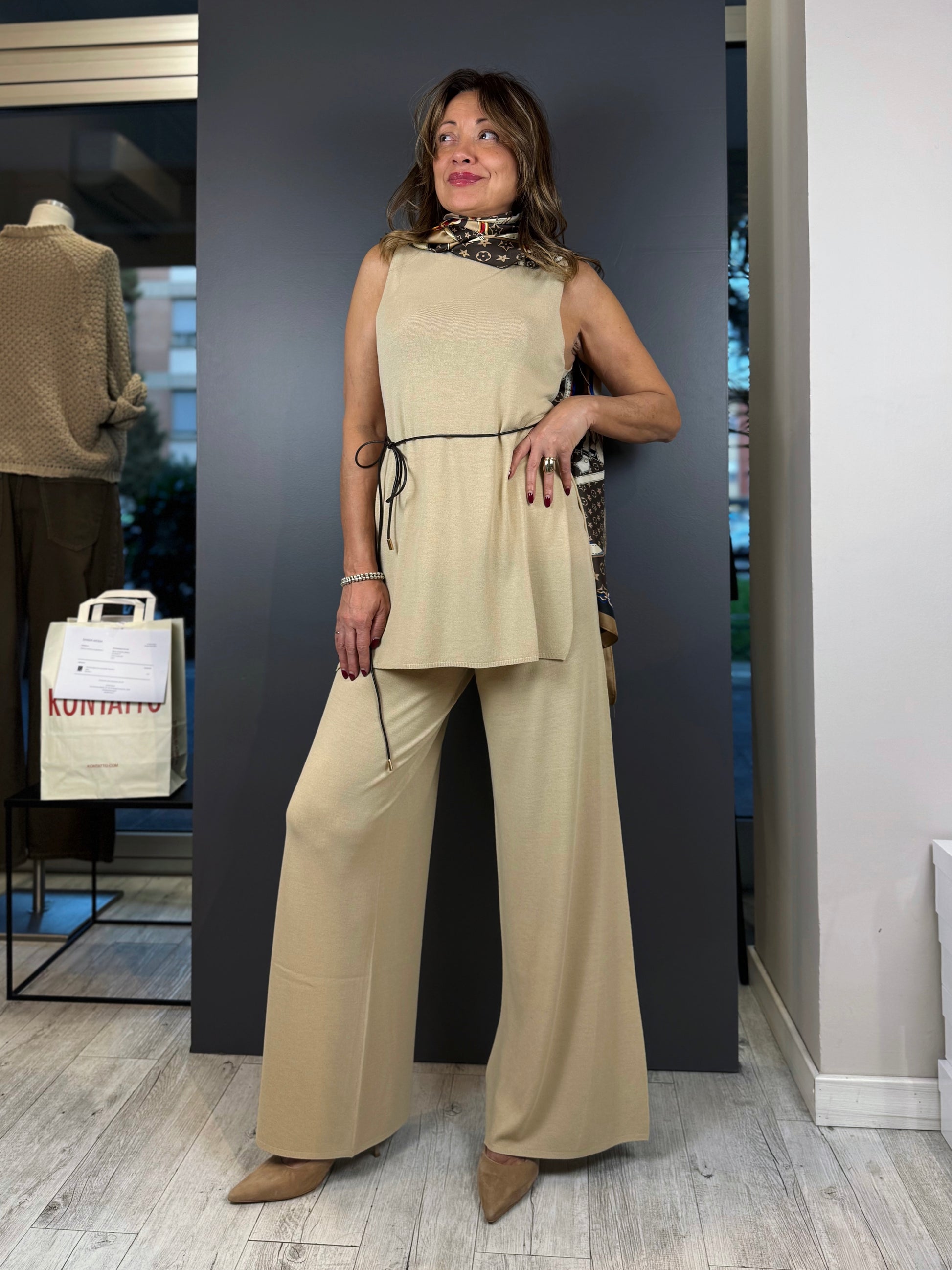 • Accessorio: Viene fornito con una sottile cintura a cordoncino coordinata, ideale per segnare il punto vita e personalizzare il fit.