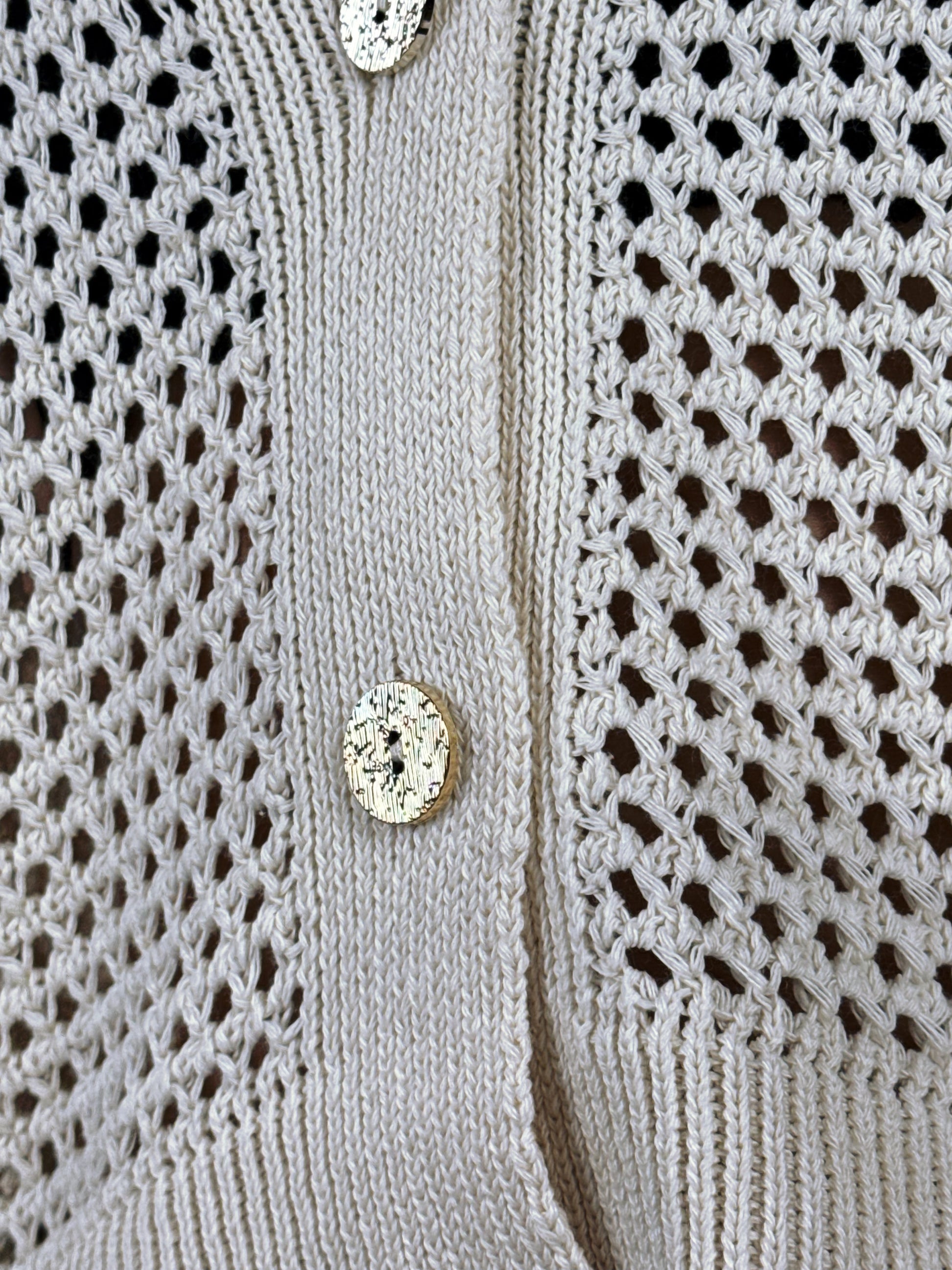Trama: L'intricata lavorazione a maglia traforata crea un bellissimo gioco di trasparenze, rendendolo fresco e traspirante.