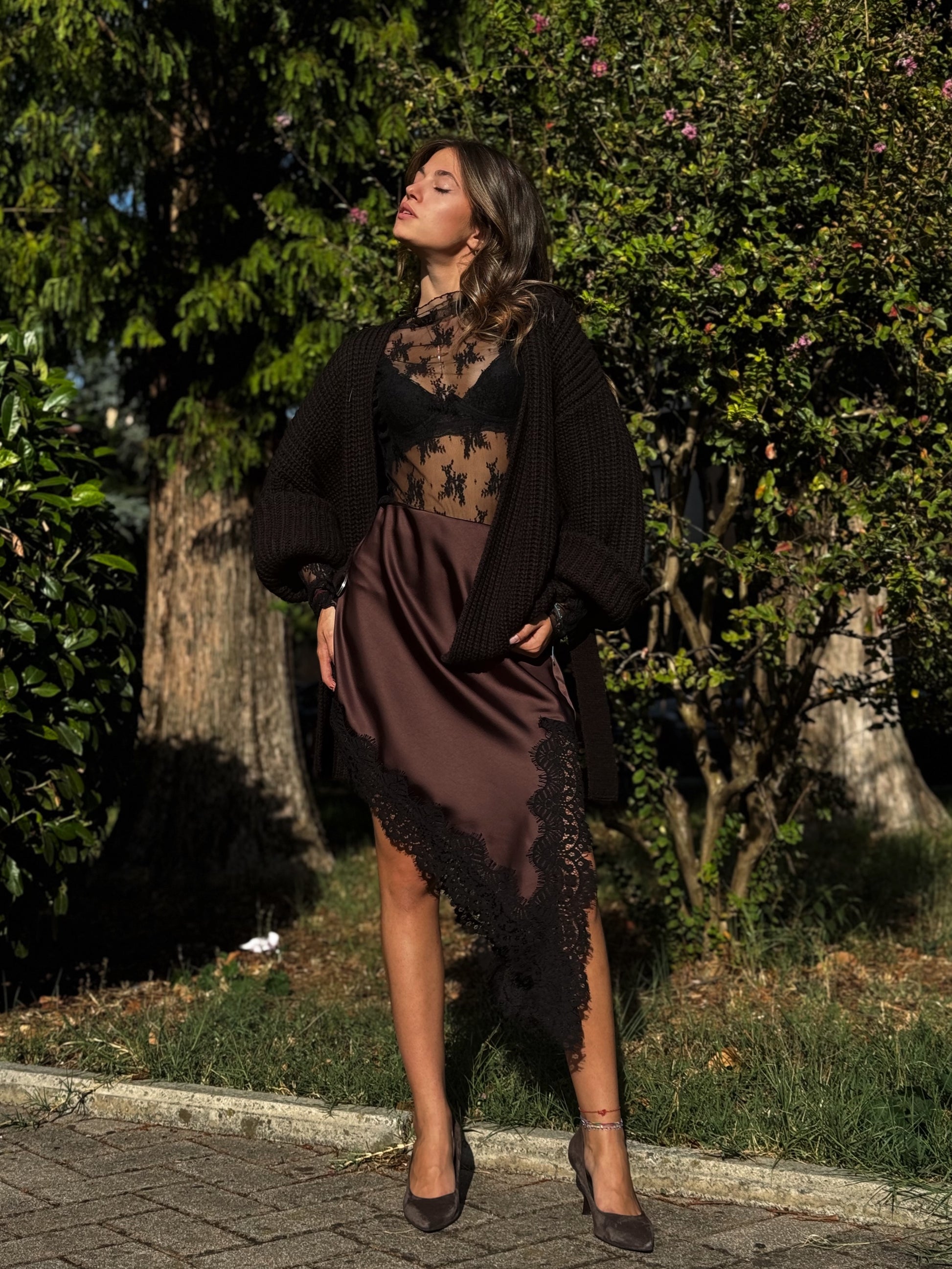 Colore: Marrone cioccolato con pizzo nero/ nero con pizzo nero