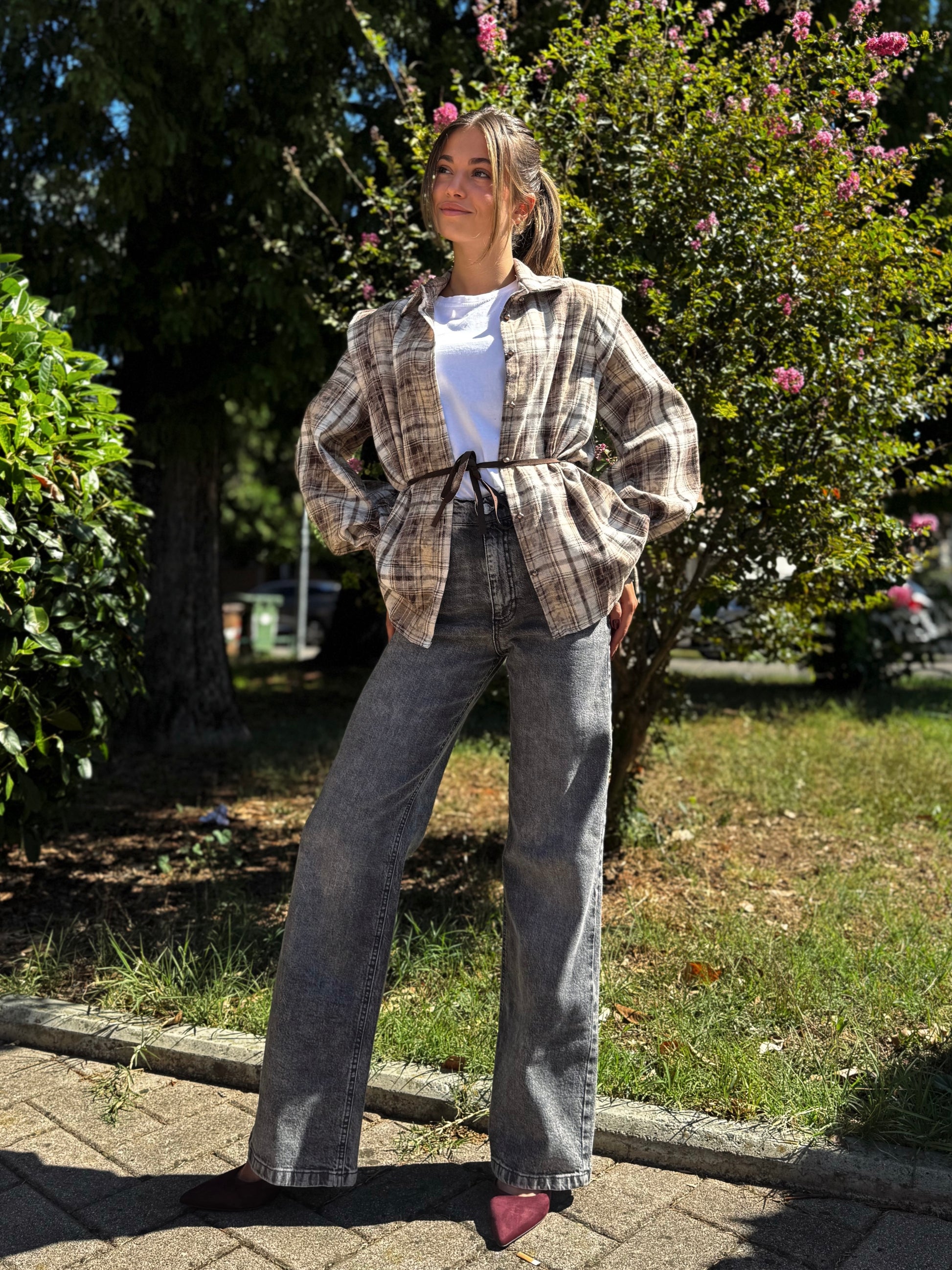 Il jeans London è un modello che nasce a vita medio/alta, dalla linea dritta e morbida. È un modello a palazzo che cade dritto sulla gamba.