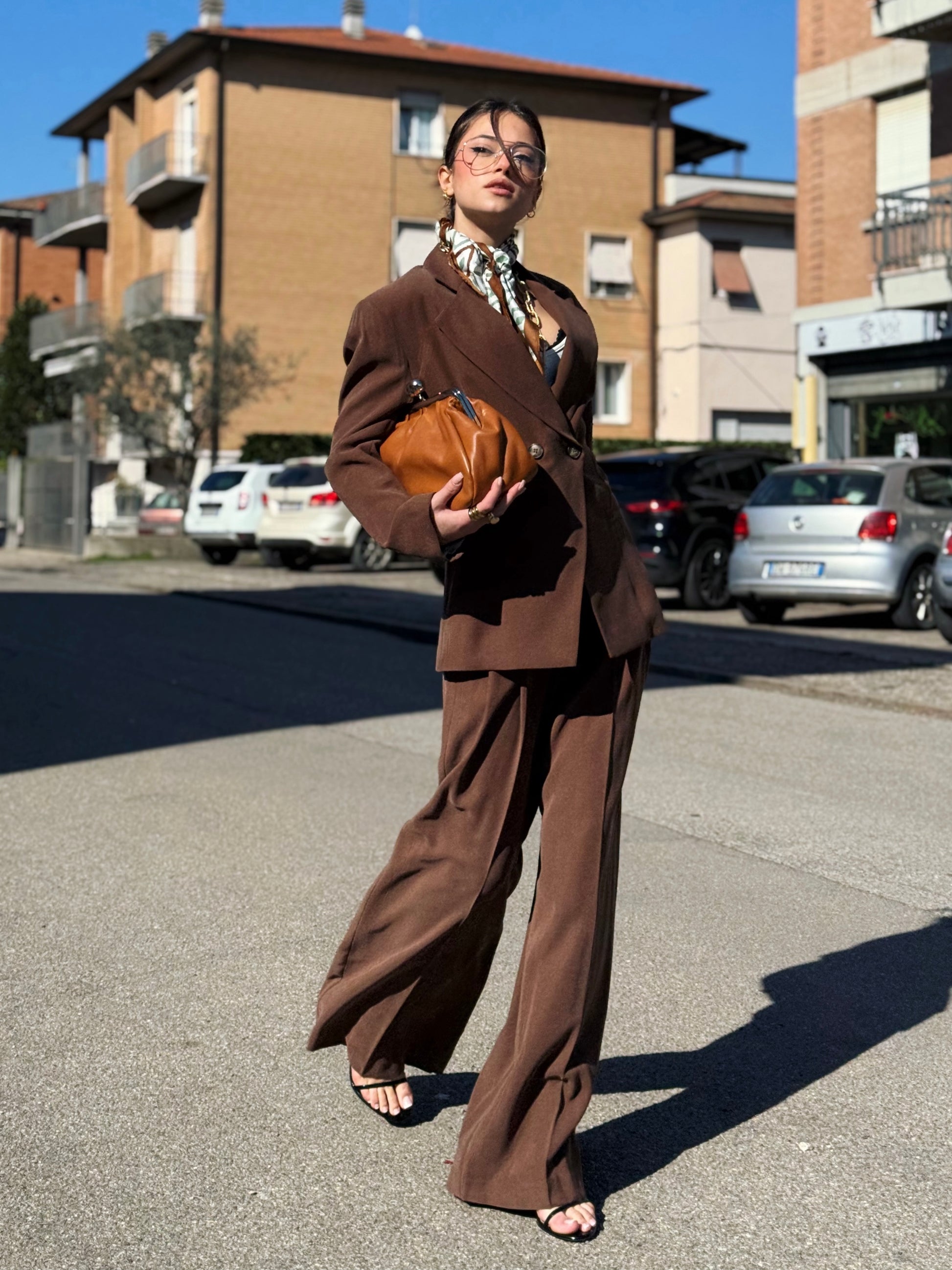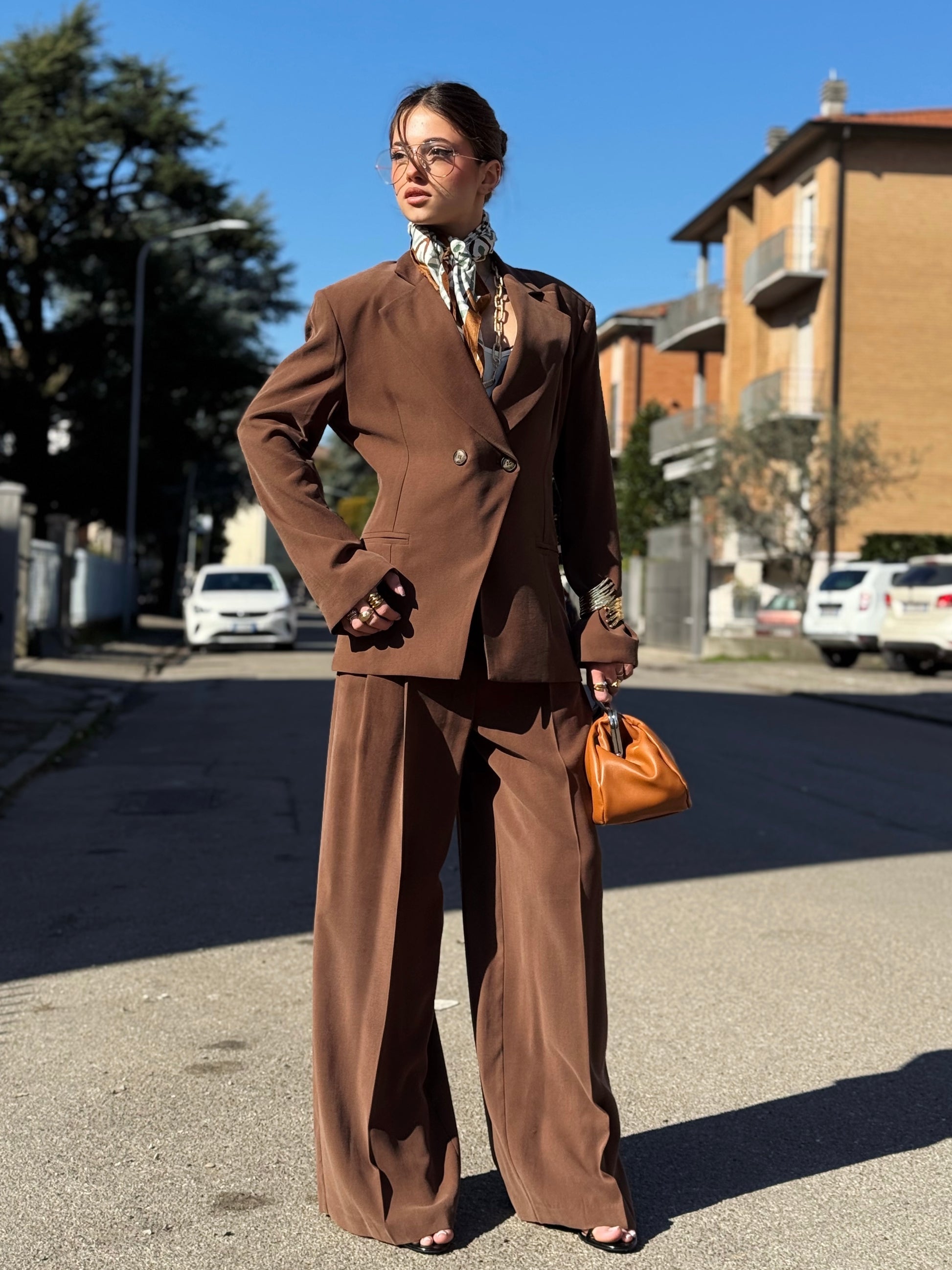 Caratterizzati da una silhouette fluida e una tonalità marrone profonda, questi pantaloni sono progettati per allungare la figura e offrire il massimo del comfort senza rinunciare all'eleganza.