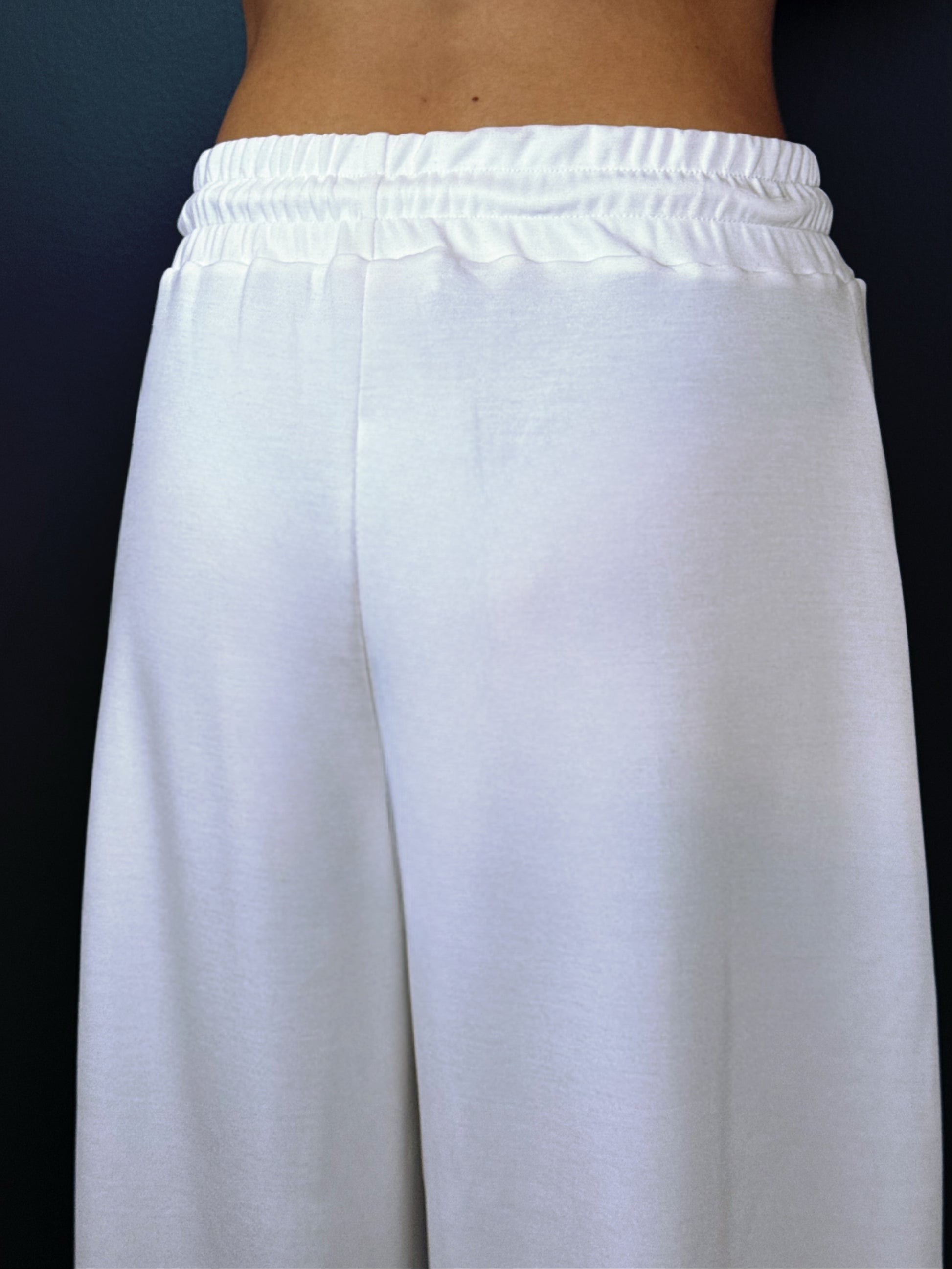 Design Wide Leg: Il taglio ampio e dritto della gamba crea un movimento fluido ad ogni passo, allungando visivamente la silhouette.