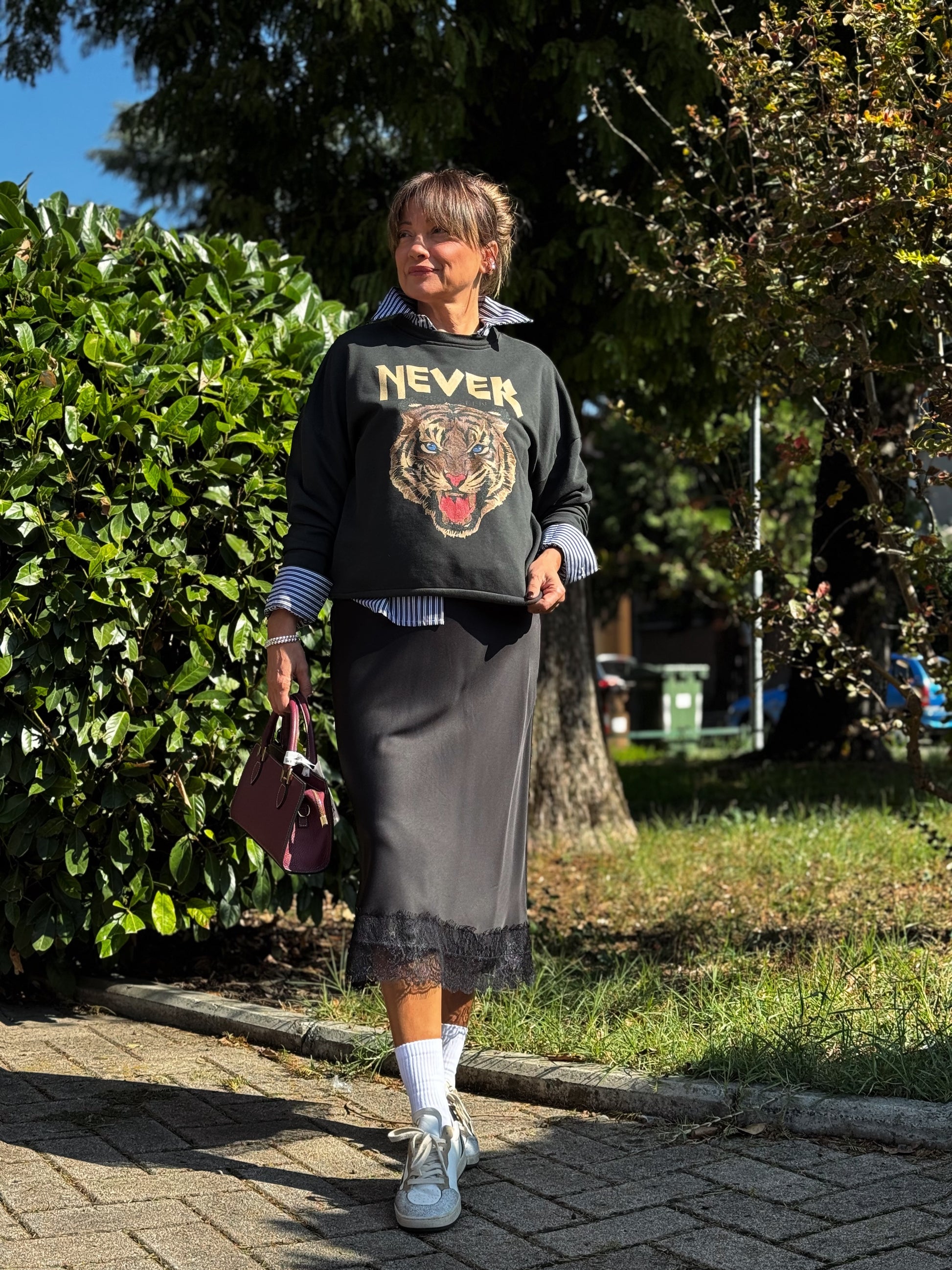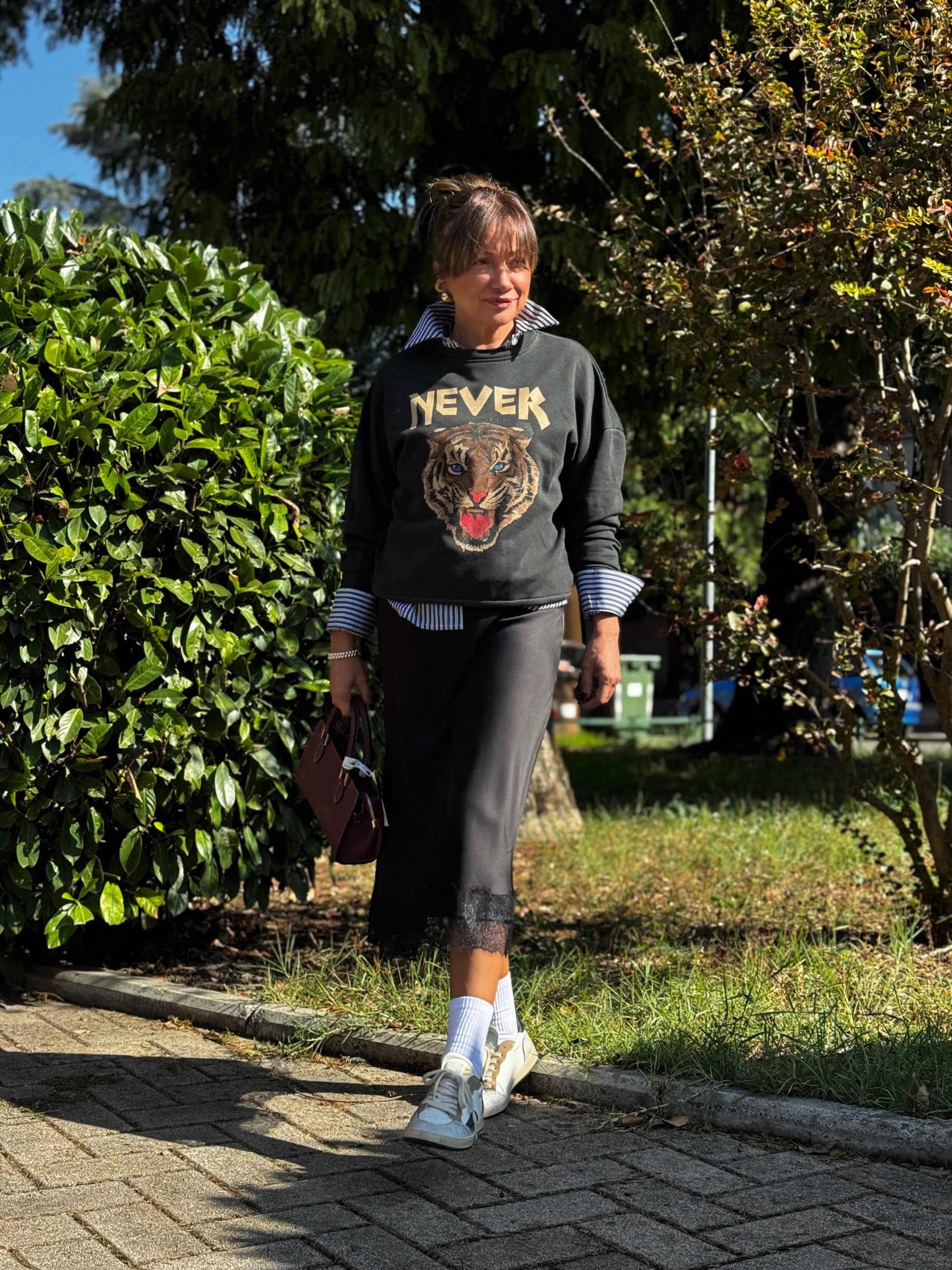 Longuette nera con fondo in pizzo ed elastico in vita. Vestibilità ottima!