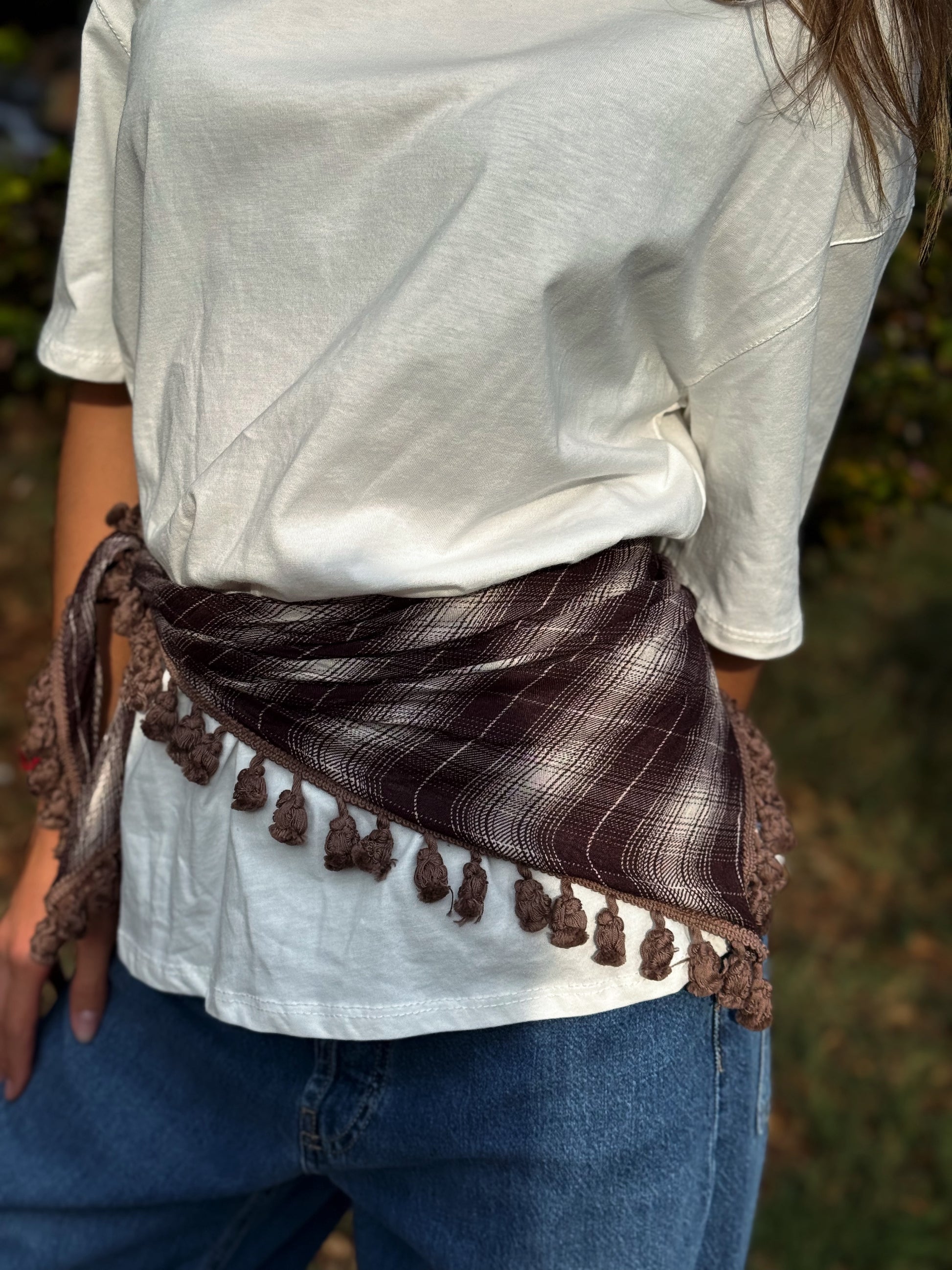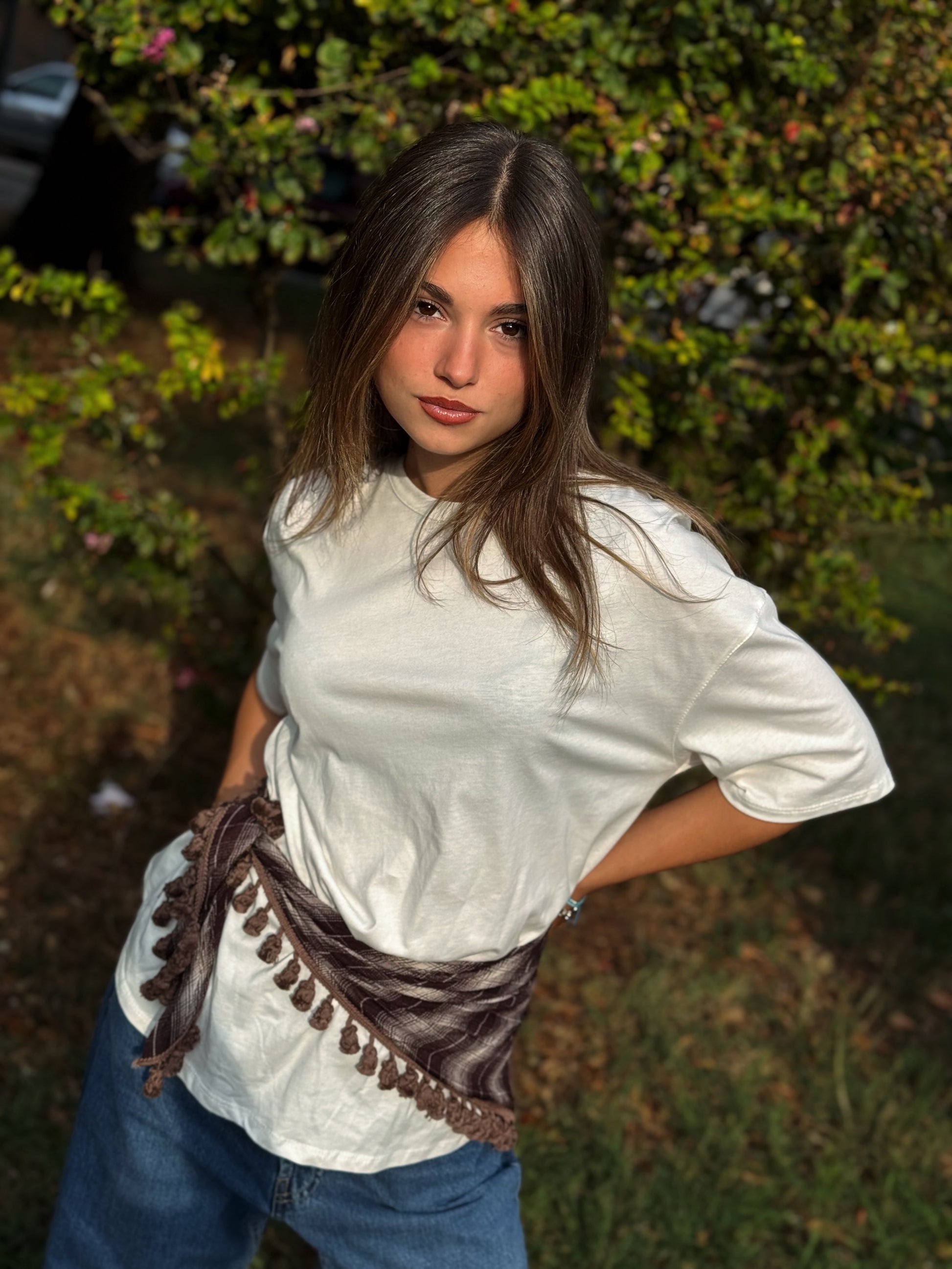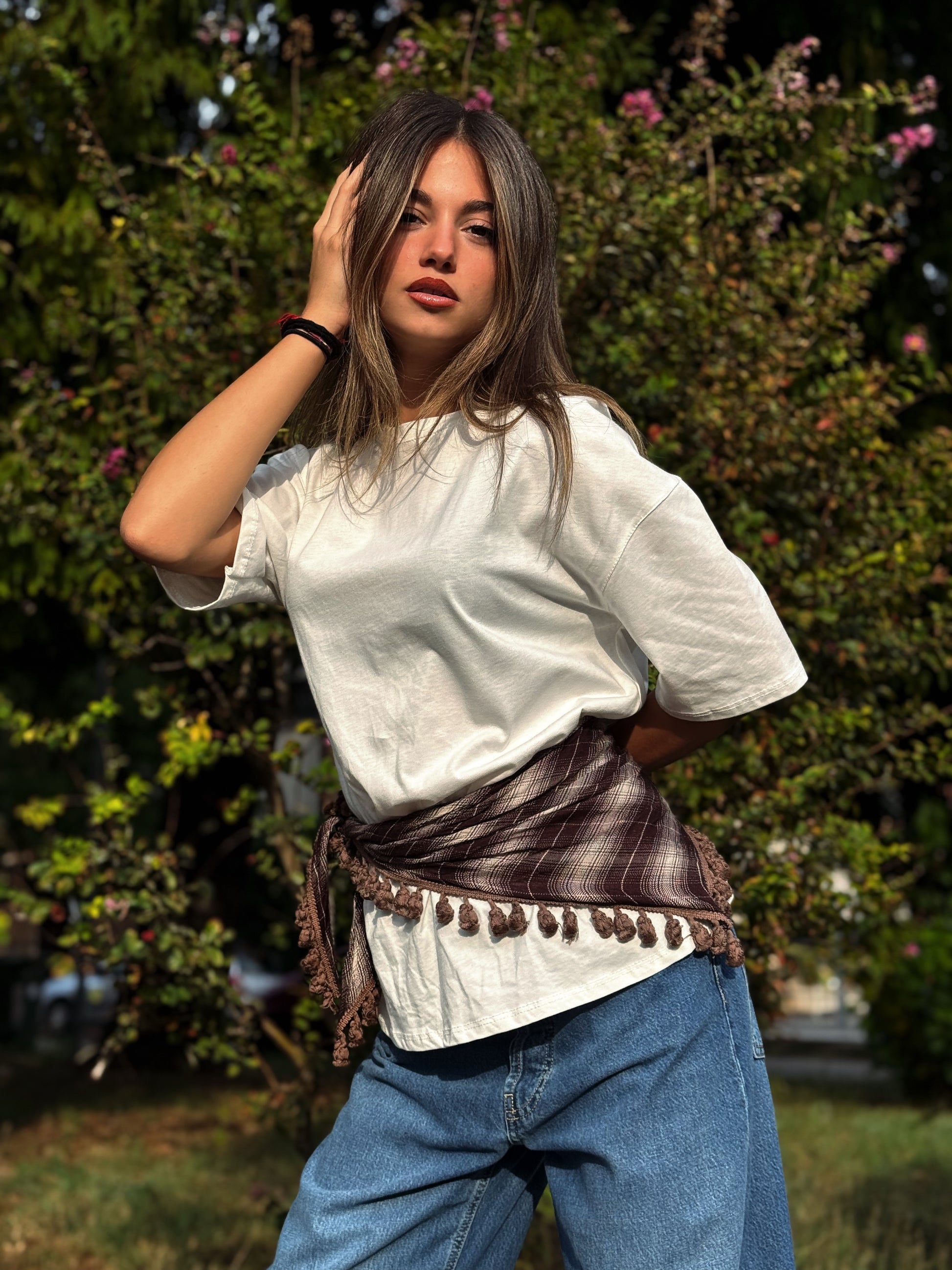 T-shirt basic girocollo, con bandana incorporata. Taglia unica, vestibilitá regolare.