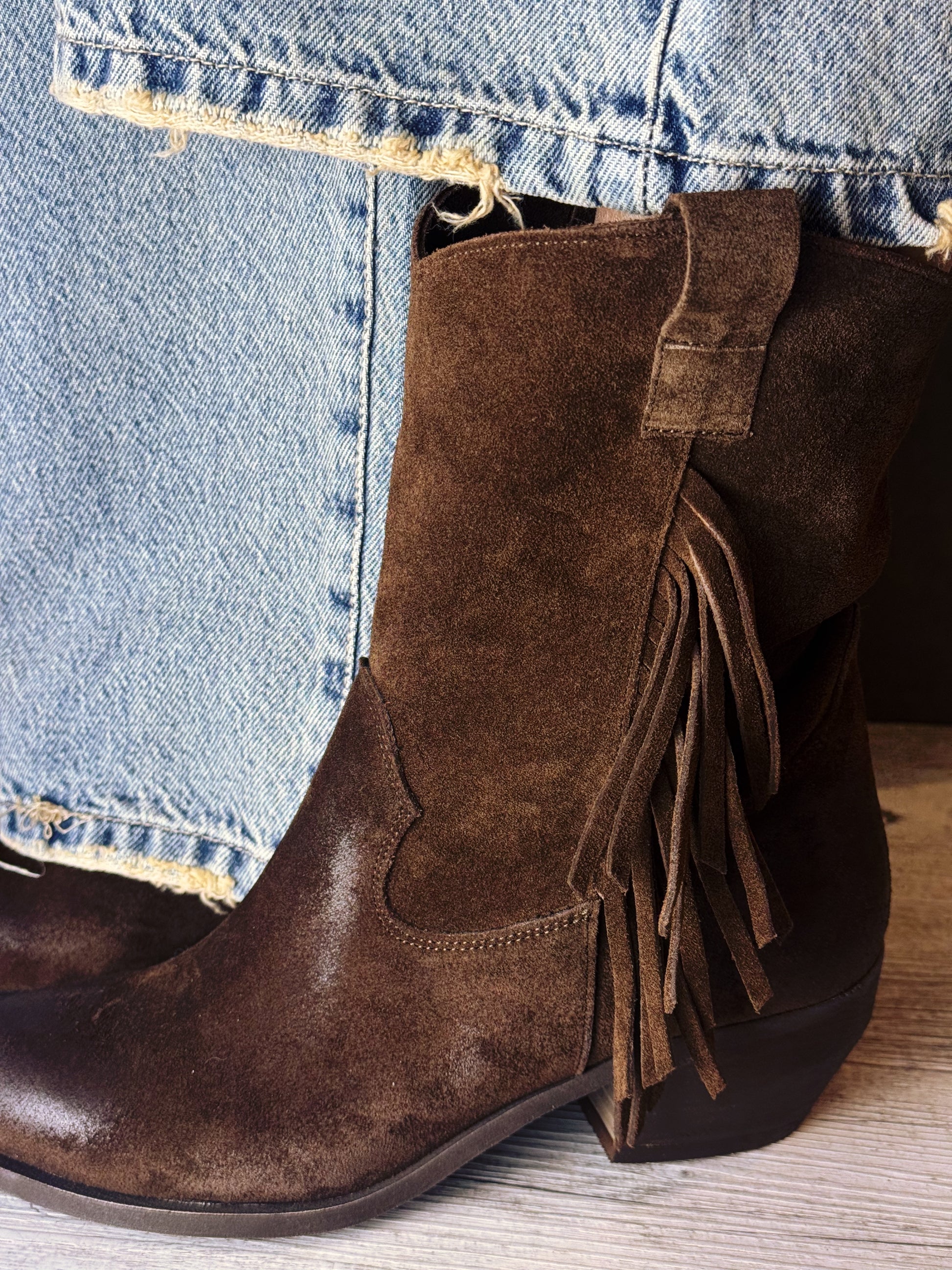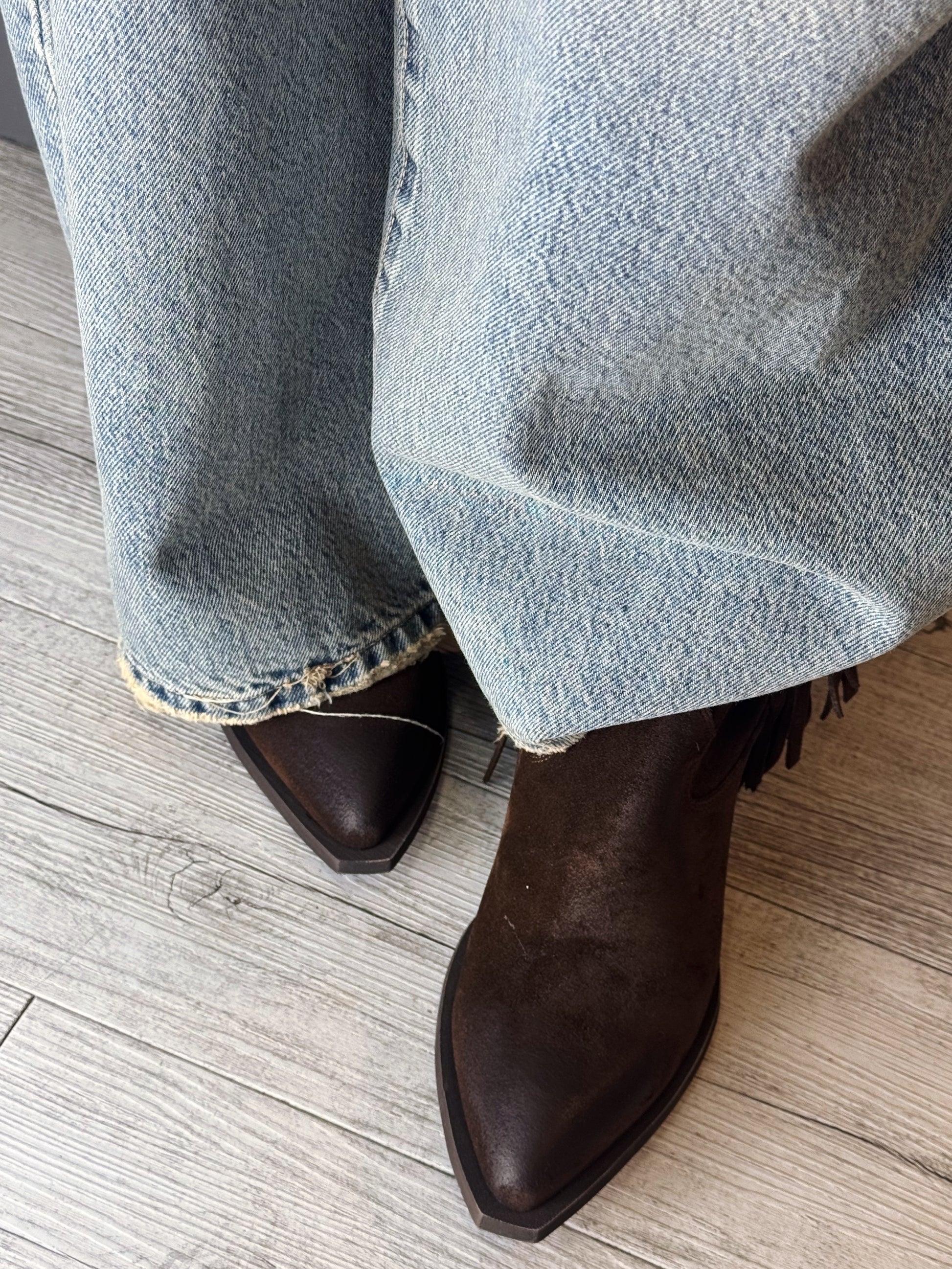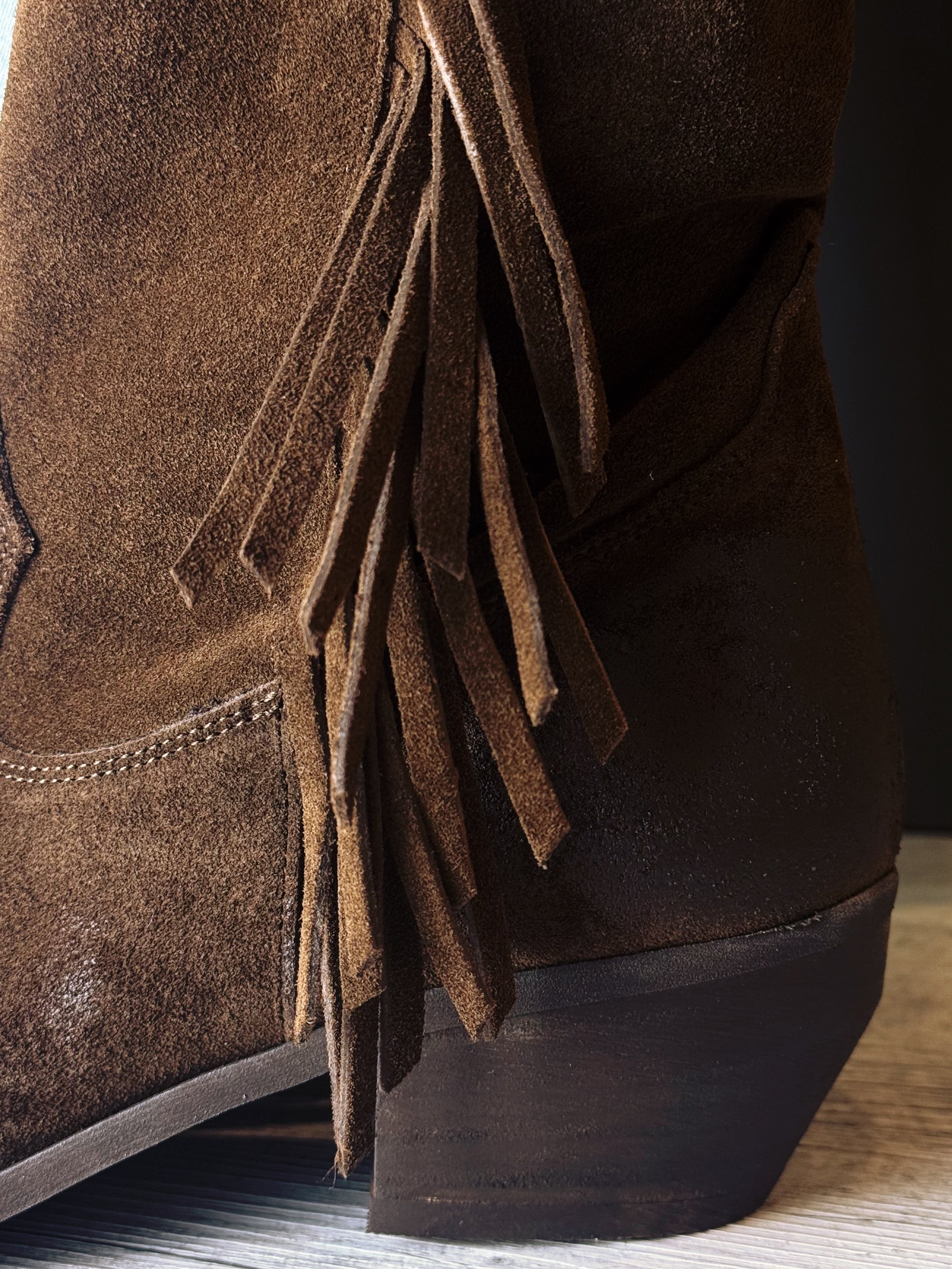 Pelle di Qualità: Realizzato in morbido suede marrone scuro con una particolare finitura spazzolata sulla punta e sul tallone per un autentico effetto vintage.